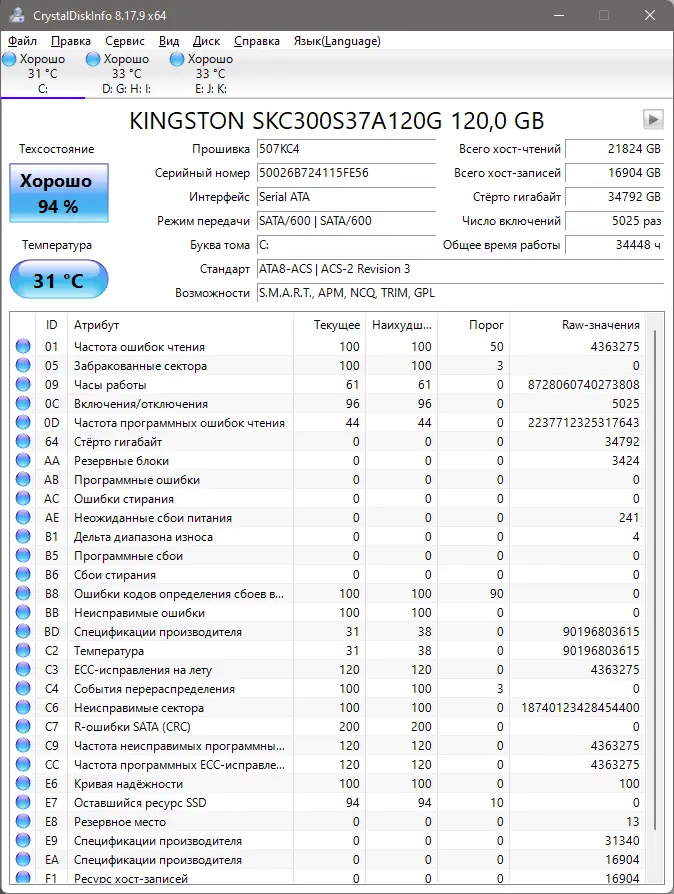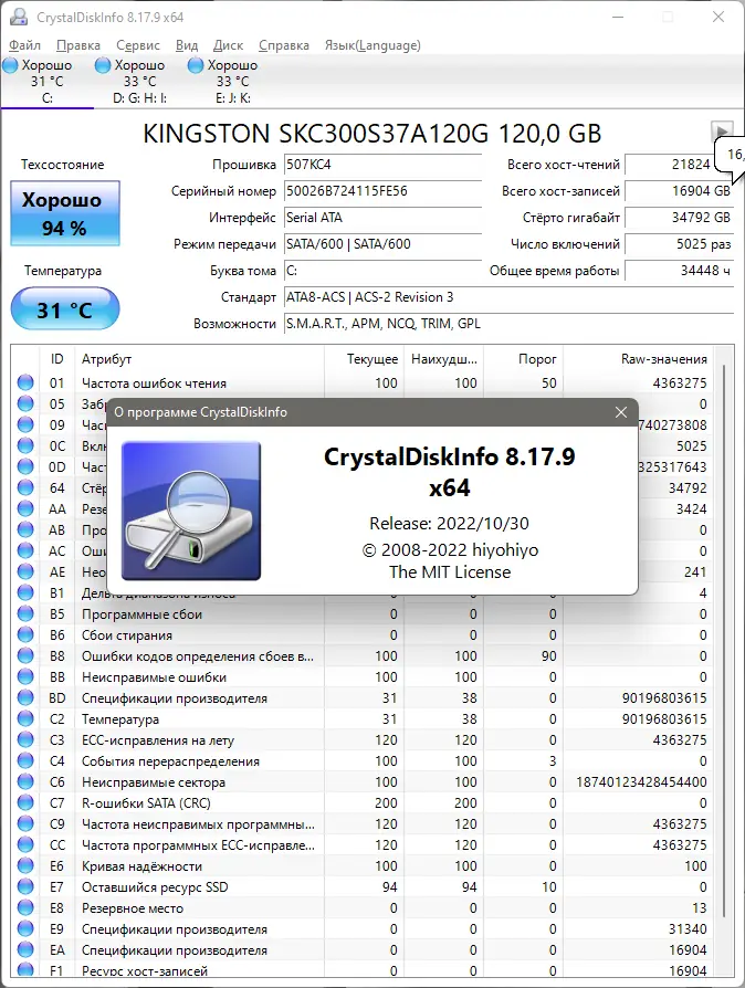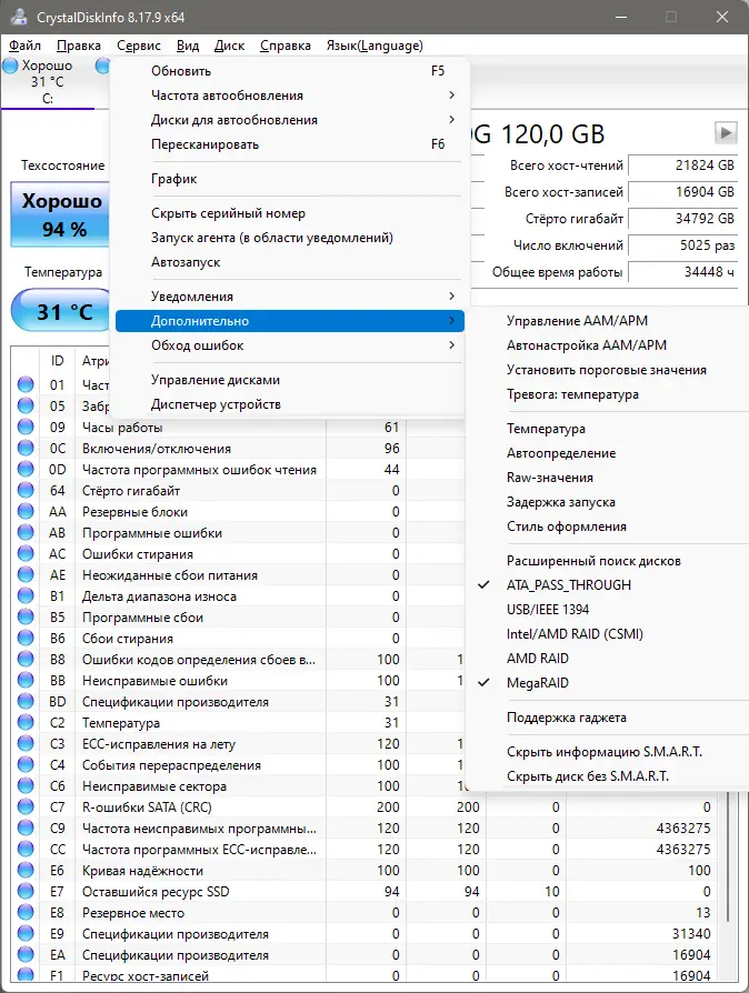 Работа с CrystalDiskInfo