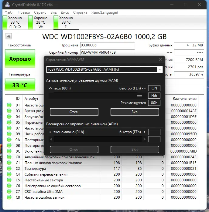 - Наличие предупреждений при приближении к критическим значениям параметров S.M.A.R.T.