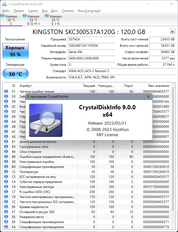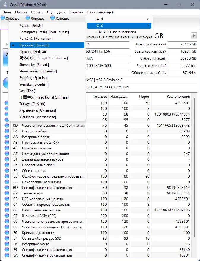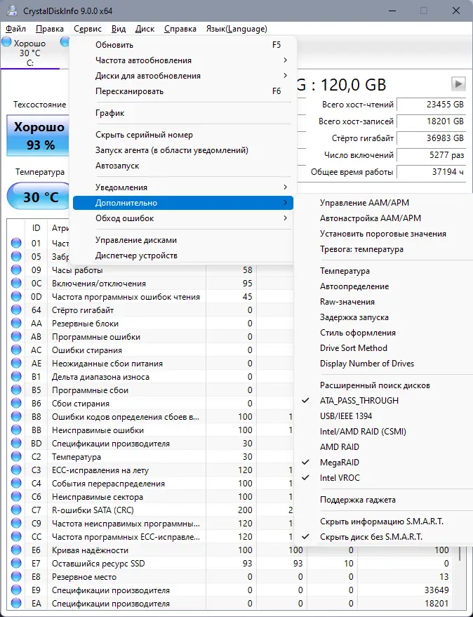 Работа с CrystalDiskInfo