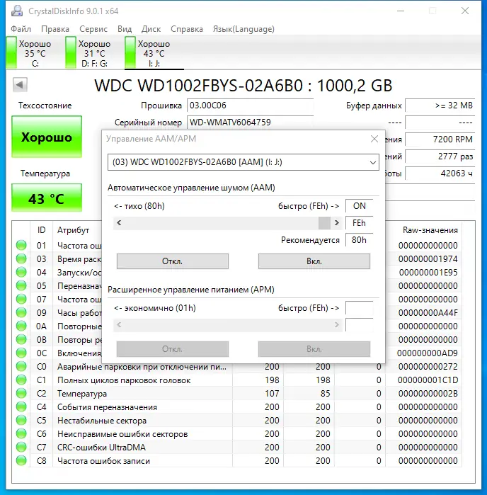 CrystalDiskInfo — это надёжное решение для диагностики накопителей, которое поддерживает как традиционные HDD, так и современные ssd. Утилита отслеживает изменения в атрибутах S.M.A.R.T., анализирует производительность и выдаёт комплексную оценку состояния каждого диска в системе. Пользователь получает доступ к данным о прошивке, серийном номере, времени наработки, типе интерфейса подключения и других технических характеристиках. Программа поддерживает накопители с подключением через USB и IEEE 1394, включая внешние устройства. Благодаря встроенной поддержке управления AAM и APM, можно настраивать акустические режимы и энергопотребление дисков. Интерфейс легко адаптируется под предпочтения: доступны темы оформления и локализация на русском языке.