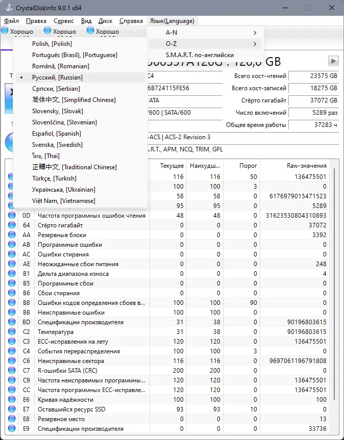 - Возможны ограничения при чтении S.M.A.R.T. с некоторыми USB-адаптерами