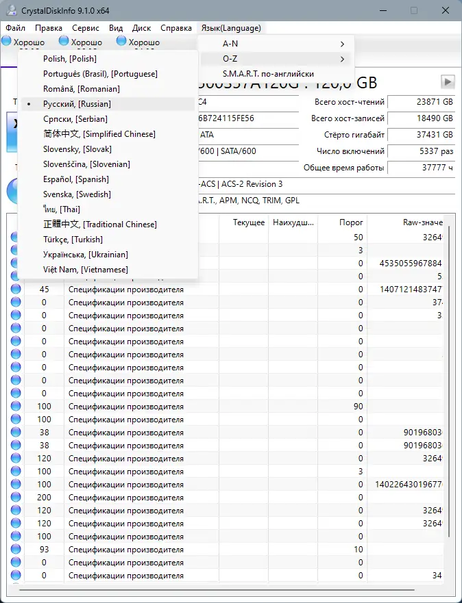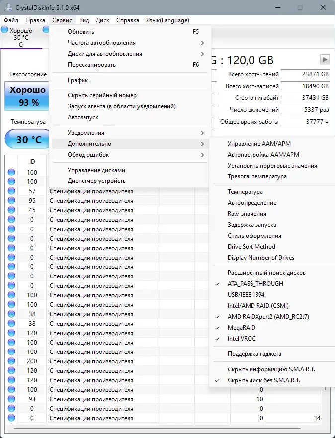 Работа с CrystalDiskInfo
