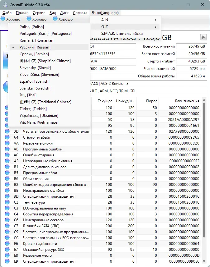 Работа с CrystalDiskInfo