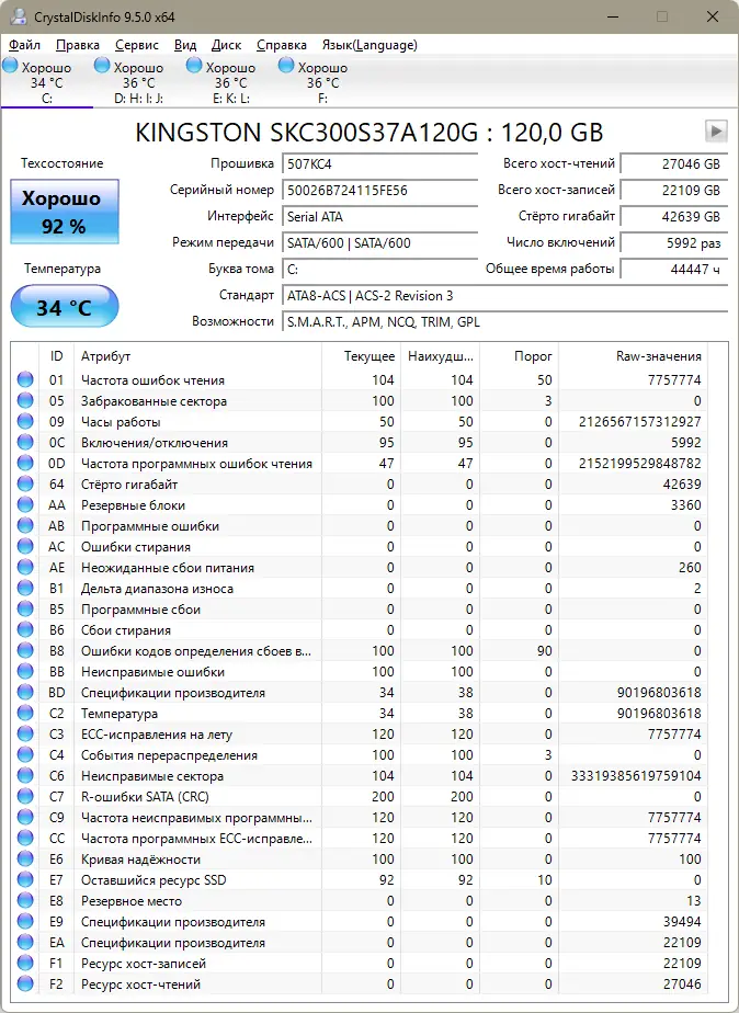 CrystalDiskInfo — это мощный инструмент для мониторинга состояния жёстких дисков и твердотельных накопителей, поддерживающих технологию S.M.A.R.T. Программа позволяет в режиме реального времени отслеживать температуру, уровень износа, количество ошибок и другие ключевые параметры, помогая предотвратить потерю данных. С её помощью можно быстро оценить, как проверить состояние диска и вовремя выявить потенциальные сбои. Интерфейс простой, но информативный, подходит как новичкам, так и продвинутым пользователям. Утилита поддерживает как внутренние, так и внешние устройства, включая современные ssd, и предоставляет детальную статистику по каждому накопителю.