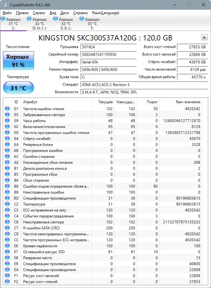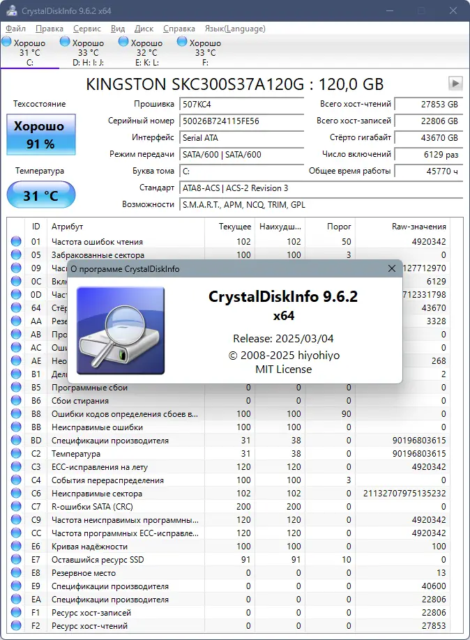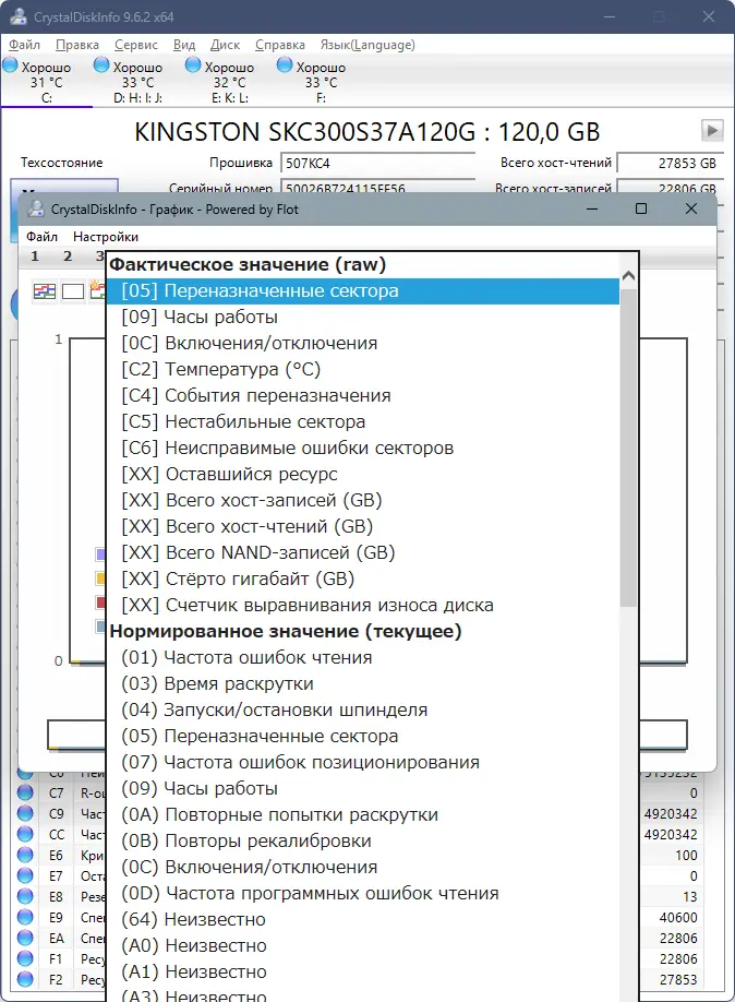 Работа с CrystalDiskInfo