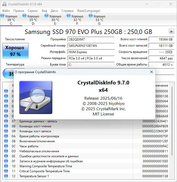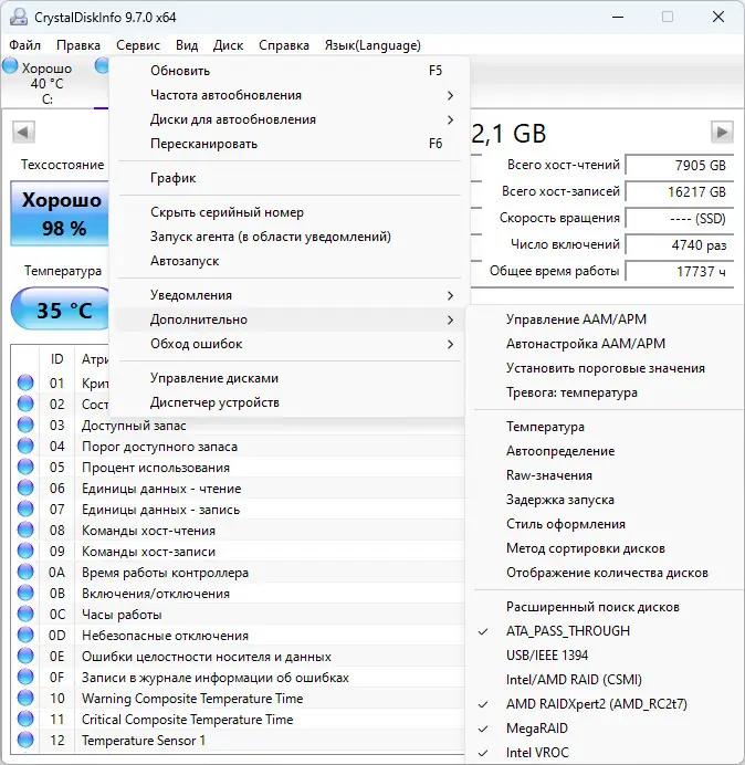 Работа с CrystalDiskInfo