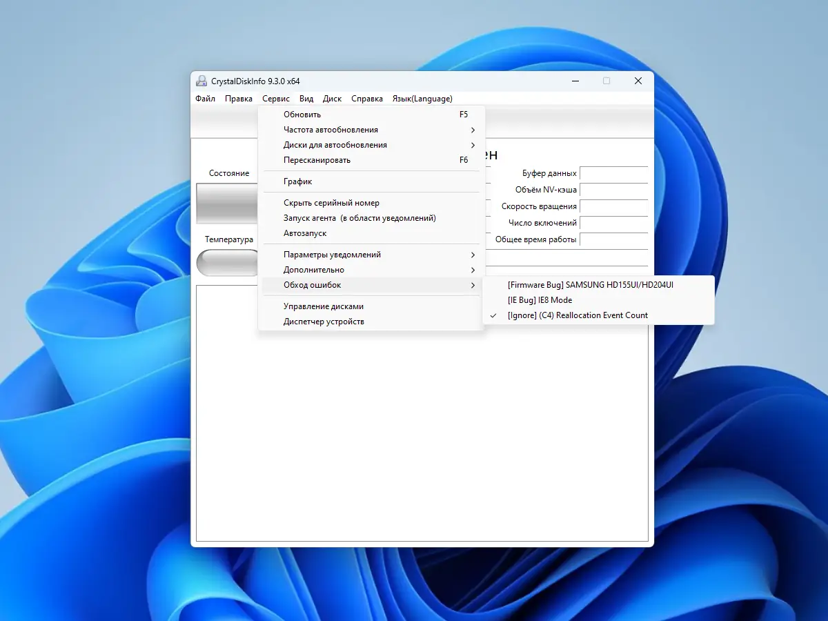 Работа с CrystalDiskInfo