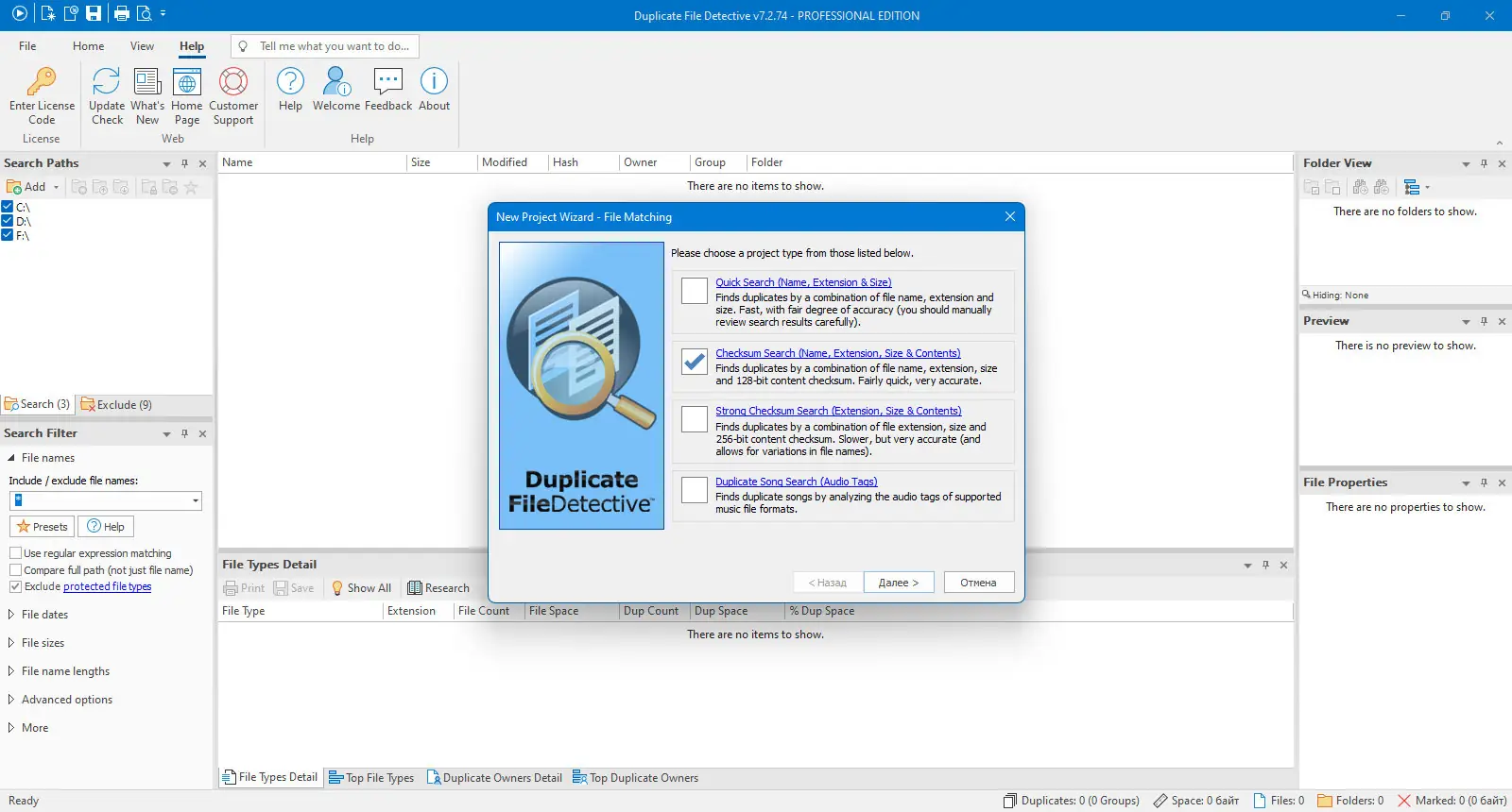 Описание Duplicate File Detective