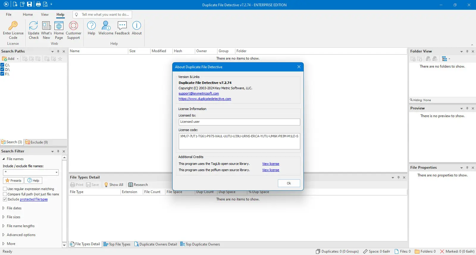 Duplicate File Detective — это мощное программное обеспечение для поиска и удаления дублирующихся файлов на жестких дисках, съемных носителях и сетевых папках. Программа анализирует содержимое файлов, используя алгоритмы хэширования, и предлагает гибкие инструменты для очистки дискового пространства, оптимизации хранения данных и повышения общей производительности системы. Благодаря поддержке ссылок, архивации и командной строки, она подходит как для домашнего, так и для корпоративного использования.