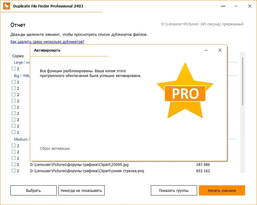 Пользоваться приложением просто: после запуска нужно выбрать папки для анализа, запустить сканирование и дождаться завершения. По окончании процесса откроется список всех найденных дубликатов, сгруппированных по схожести. Пользователь может просмотреть каждый файл, сравнить их расположение и размер, после чего выбрать, какие из них следует удалить. Поддержка массовых операций позволяет очищать систему за один сеанс. Интерфейс остаётся отзывчивым даже при работе с тысячами объектов, что делает процесс удобным и предсказуемым. Программа не вносит изменений без подтверждения, что исключает случайное удаление важных данных.