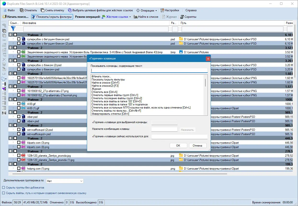 Duplicate Files Search позволяет заменять дубли жёсткими ссылками, сохраняя доступ ко всем копиям, но используя один экземпляр данных на диске.