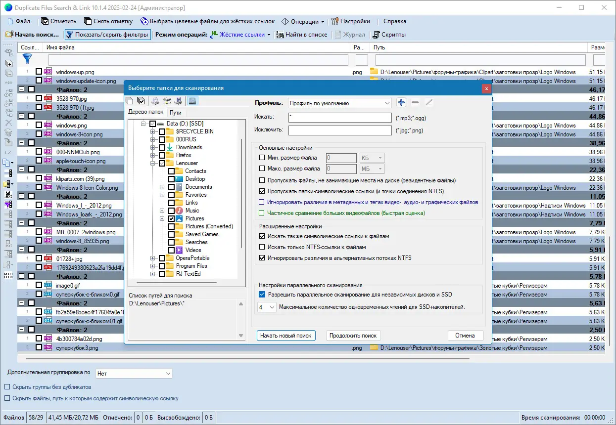 Duplicate Files Search & Link — это мощное приложение, ориентированное на оптимизацию дискового пространства за счёт выявления избыточных данных. В отличие от стандартных утилит очистки, оно работает с глубинным анализом содержимого файлов, используя побайтовое сравнение. Это позволяет точно определять дубликаты даже тогда, когда имена, расширения или метаданные различаются. Особенностью программы является поддержка работы с жёсткими и символьными ссылками NTFS, что открывает возможность эффективного управления физическим хранением данных.