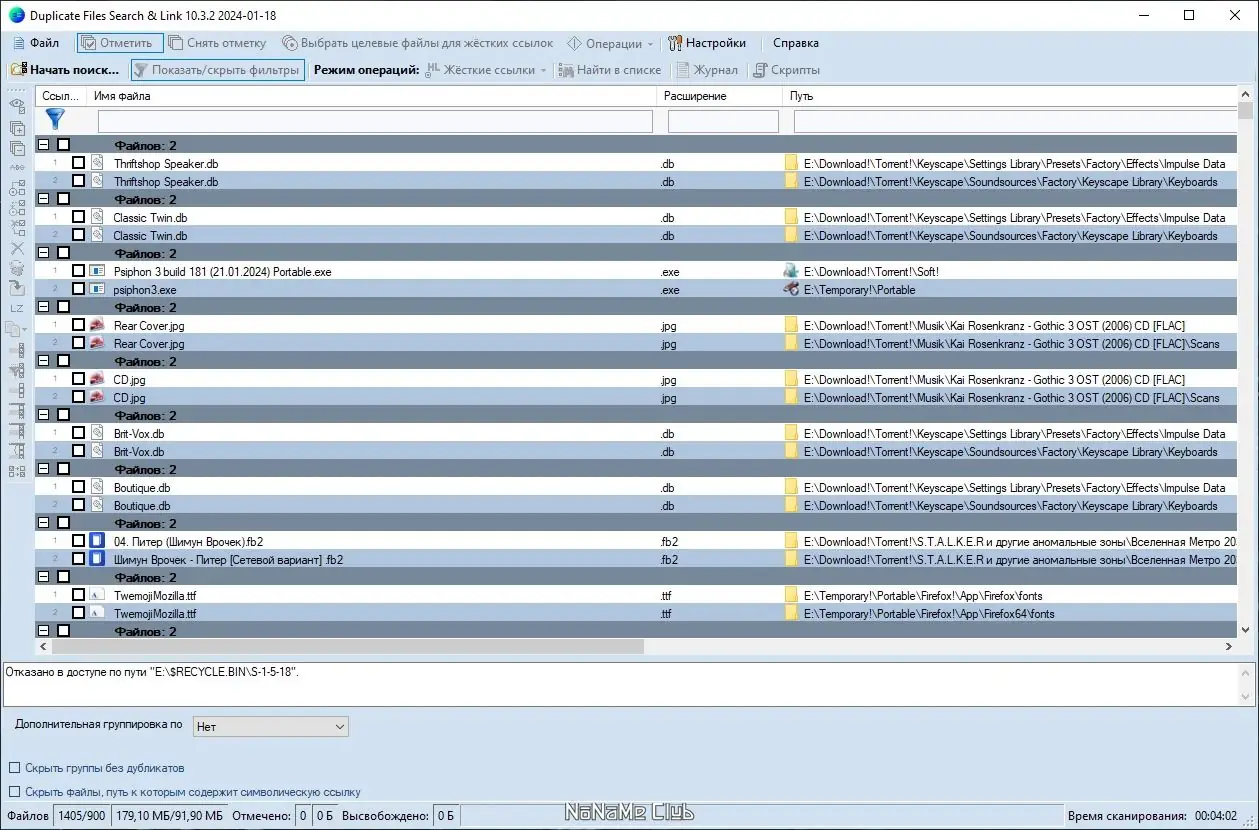 Работа с Duplicate Files Search & Link