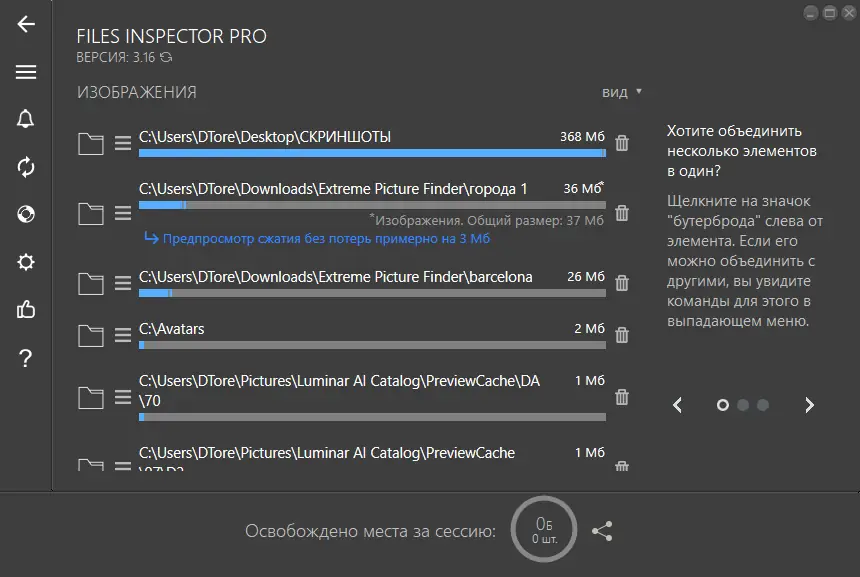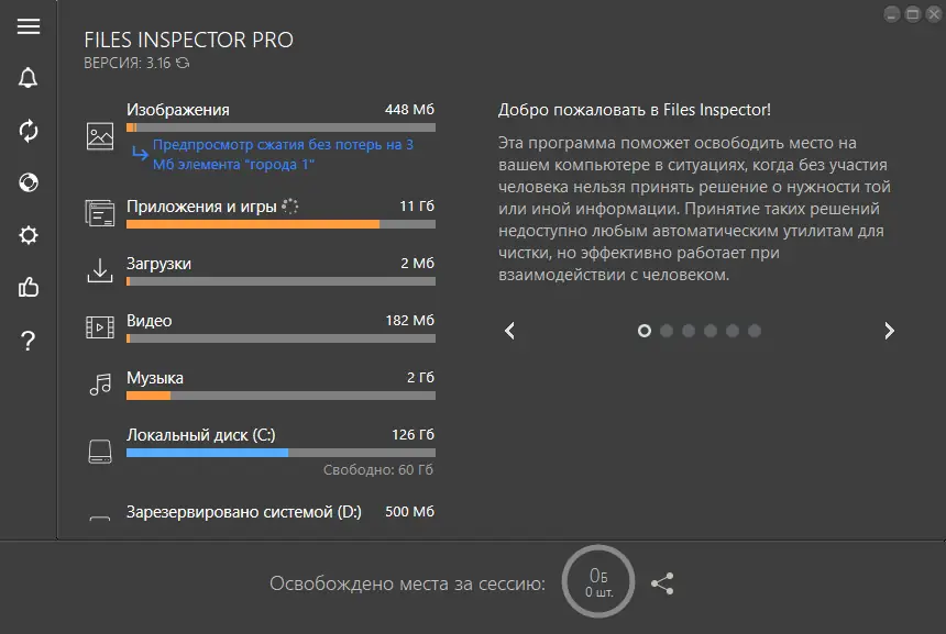 Программа Files Inspector предназначена для диагностики и управления использованием дискового пространства на компьютере. Она быстро определяет, какие папки, файлы или приложения занимают наибольший объём, и предоставляет пользователю наглядную информацию для принятия решений. Это особенно полезно, когда свободное место на диске заканчивается, а источник переполнения неочевиден.