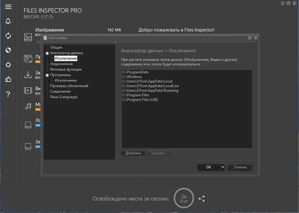 Files Inspector — это инструмент для анализа и оптимизации дискового пространства, который помогает быстро выявить, какие файлы и папки занимают больше всего места на жёстком диске. Программа подходит как для начинающих пользователей, так и для тех, кто ищет расширенные функции управления данными.