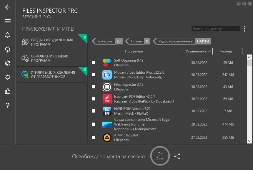 Files Inspector предлагает современный подход к управлению дисками, сочетая скорость, безопасность и гибкость. Программа быстро сканирует файловую систему и визуализирует данные, позволяя легко принимать решения по очистке. Удаление выполняется через корзину, что исключает случайную потерю информации. Дополнительно реализована возможность удаления ненужных программ напрямую из интерфейса.