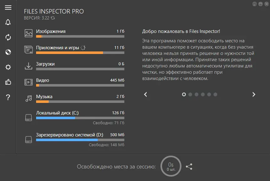 Files Inspector — это инструмент для анализа и оптимизации дискового пространства, помогающий быстро выявить файлы и папки, которые занимают наибольший объём на жёстком диске. Программа сканирует накопители, визуализирует распределение данных и позволяет удалять ненужные элементы, включая редко используемые приложения и большие медиафайлы. Подходит как для новичков, так и для продвинутых пользователей, стремящихся поддерживать систему в порядке.