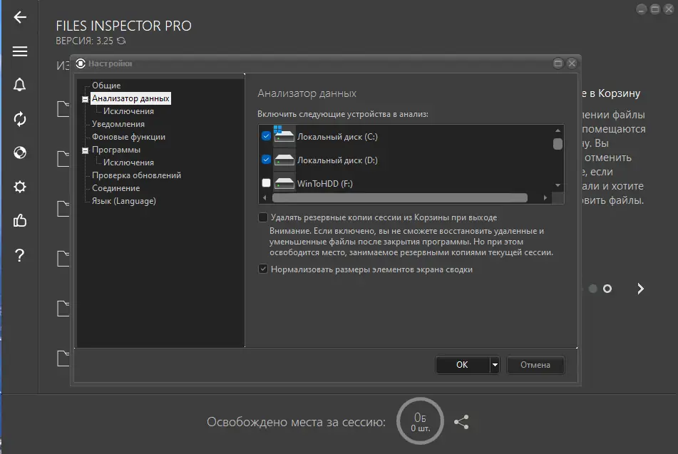 - Позволяет проводить полный анализ всех накопителей, включая внешние диски и флеш-накопители, с детализацией до отдельных папок и файлов.