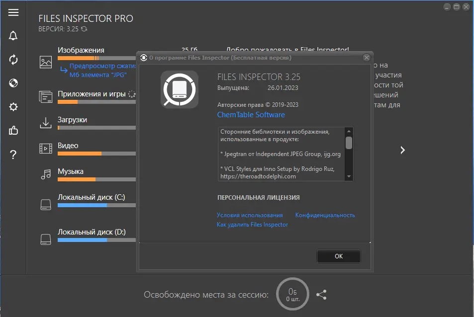 Files Inspector — это инструмент для анализа и оптимизации дискового пространства, который помогает быстро выявить, какие файлы и папки занимают наибольший объём на жёстком диске. Программа сканирует накопители, визуализирует данные в виде диаграмм и предоставляет средства для безопасного удаления ненужного контента. Подходит как для новичков, так и для продвинутых пользователей, стремящихся поддерживать систему в порядке.