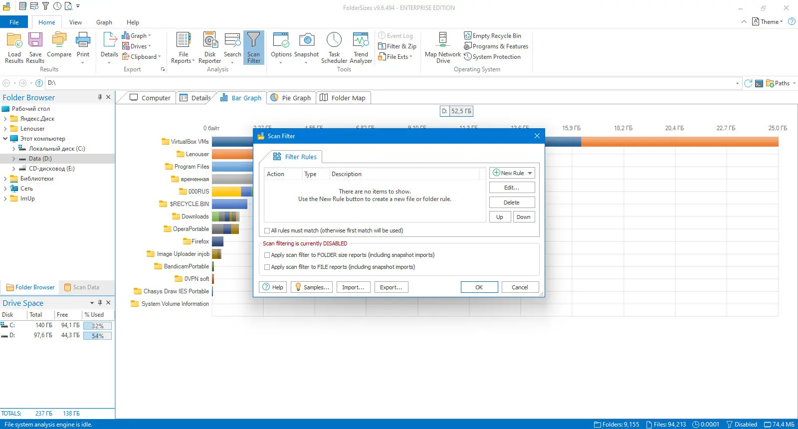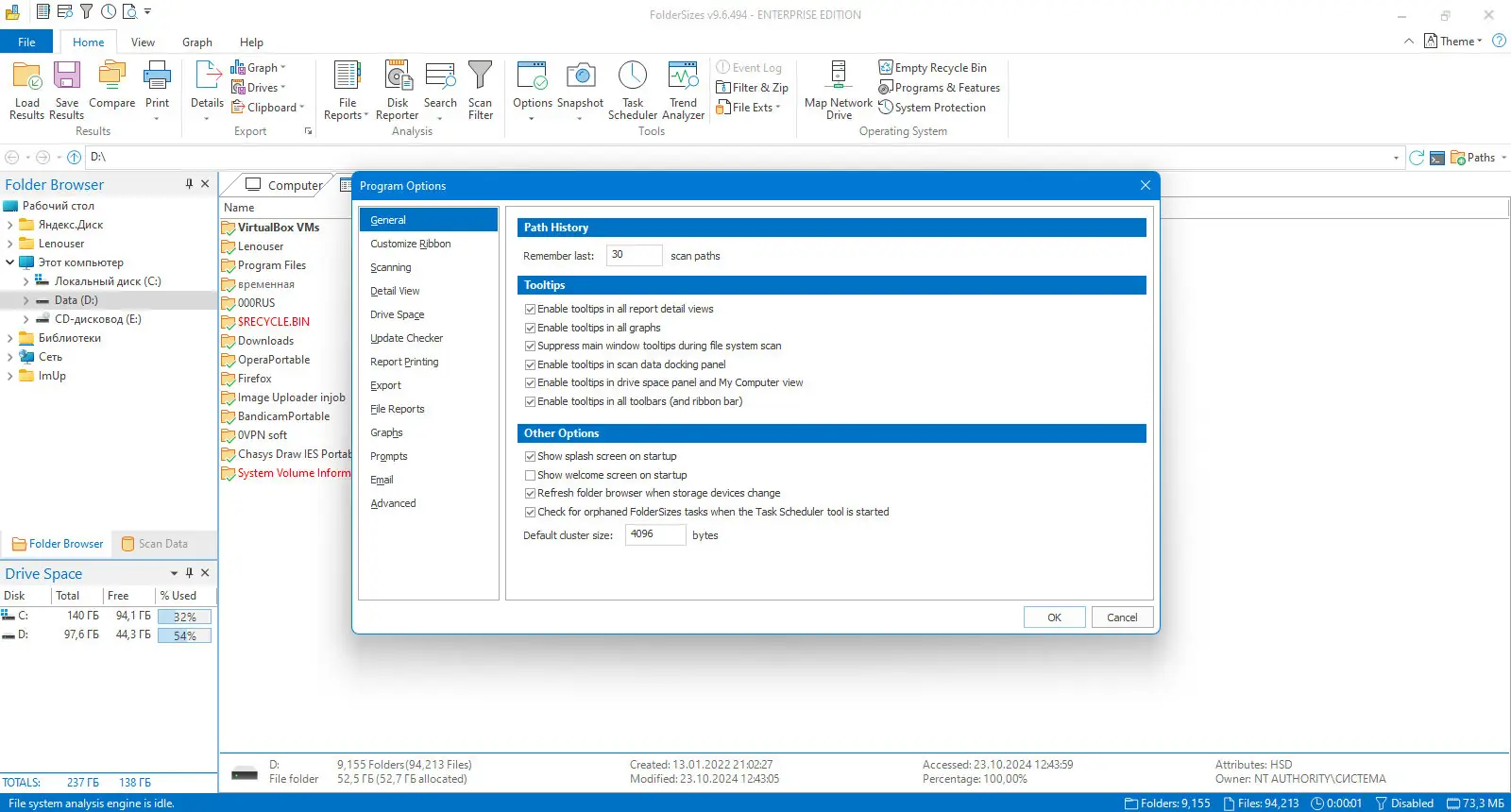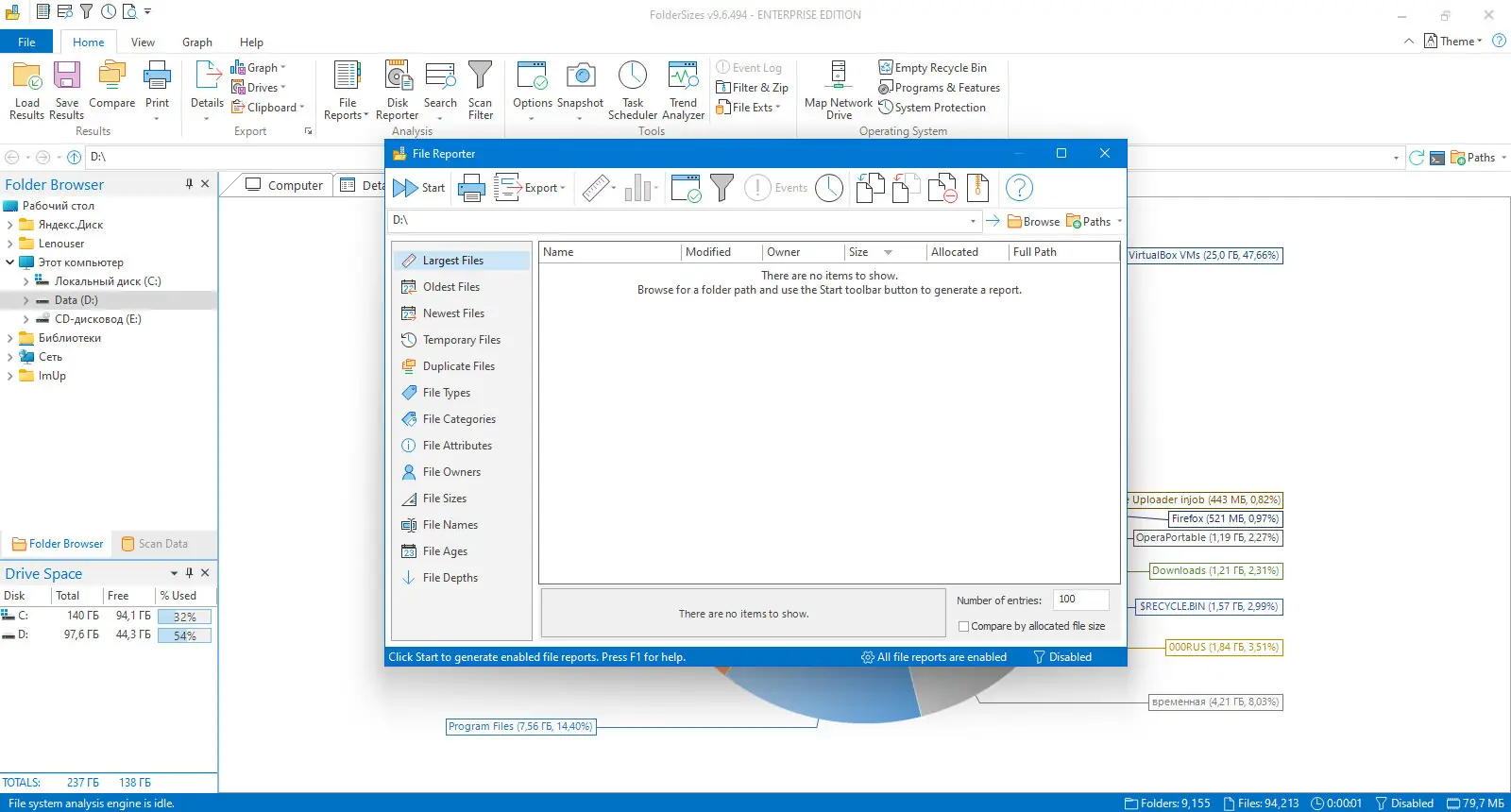 Работа с FolderSizes
