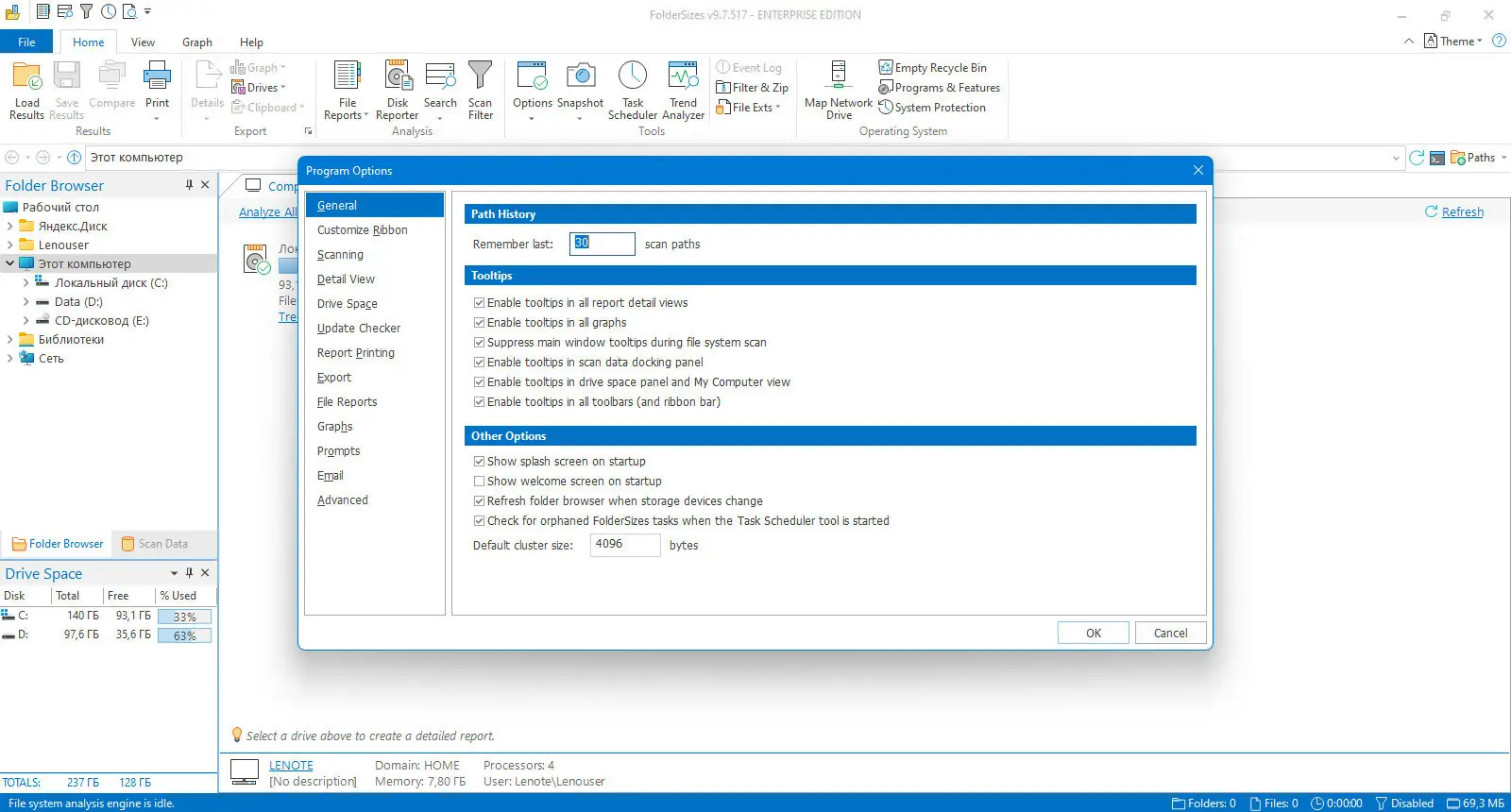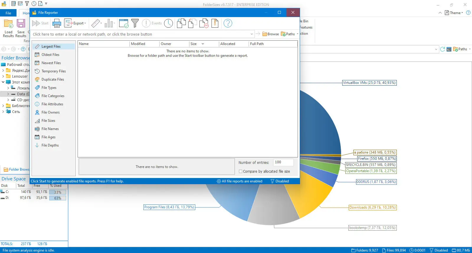 Работа с FolderSizes