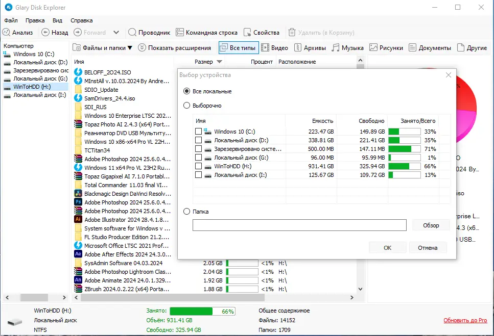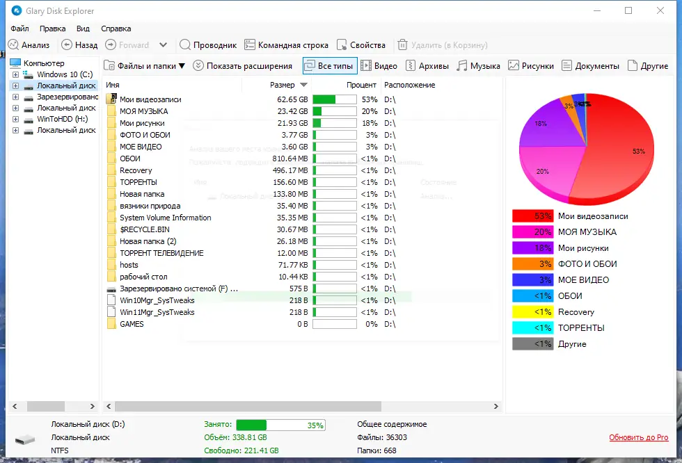 Glary Disk Explorer разработан для пользователей, которым важно контролировать использование дискового пространства. Утилита поддерживает сканирование всех локальных дисков и отдельных разделов, предоставляя детальную статистику по объёму данных. Анализ отображается в виде круговой диаграммы, что делает распределение файлов наглядным и понятным.