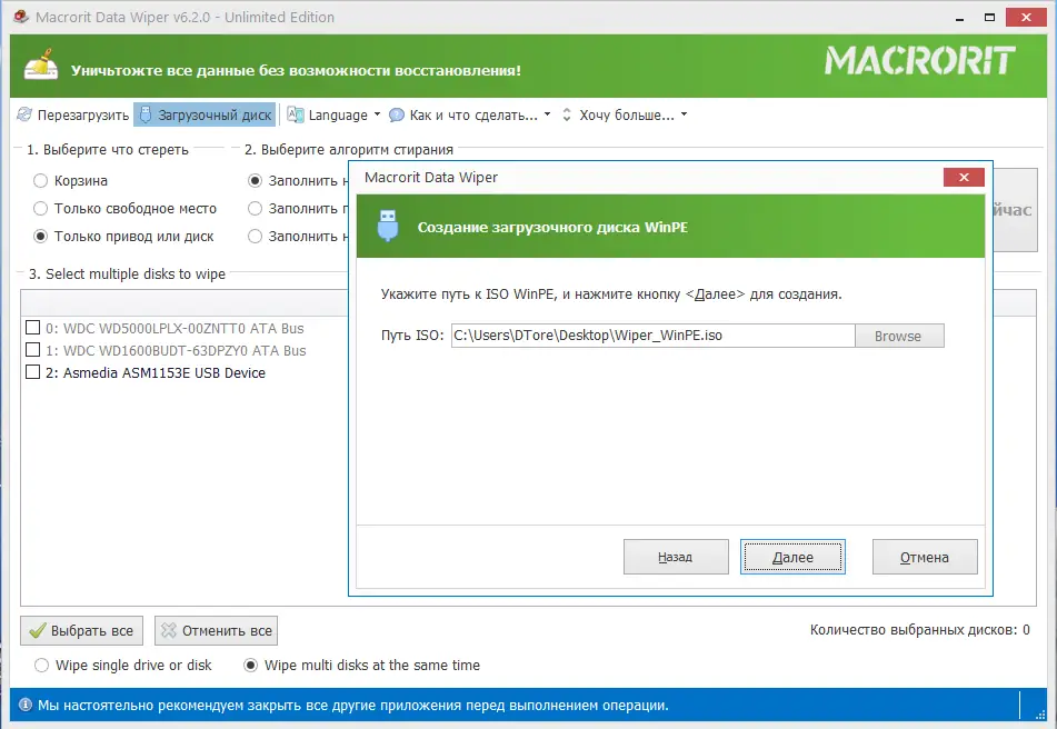 - Удаление данных с любых типов носителей: HDD, SSD, USB-флешки, внешние диски