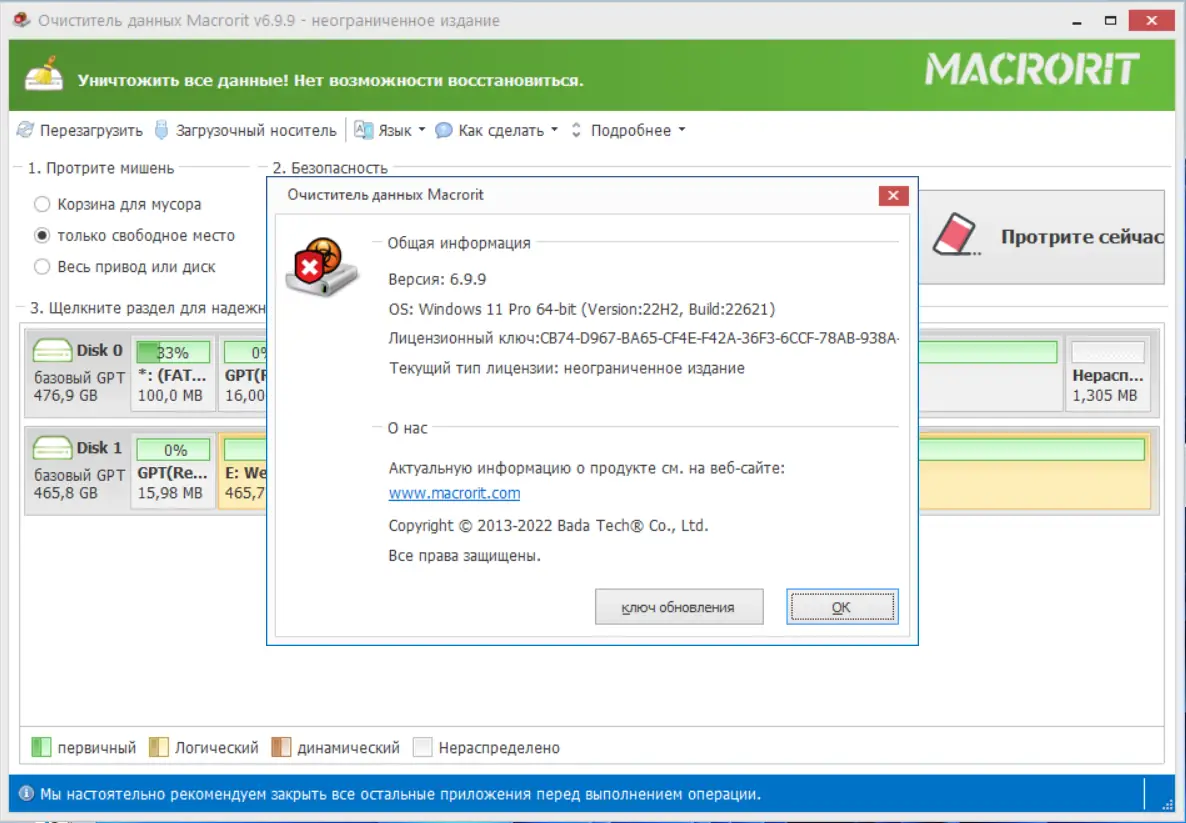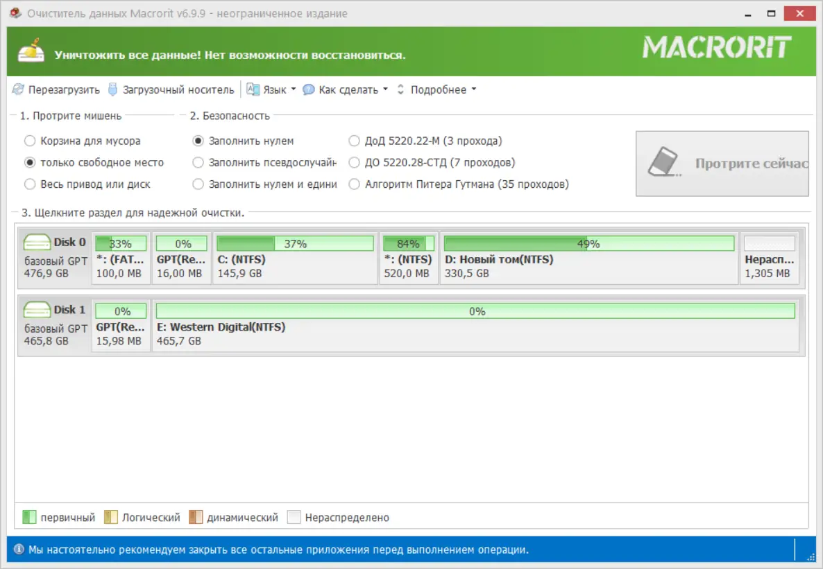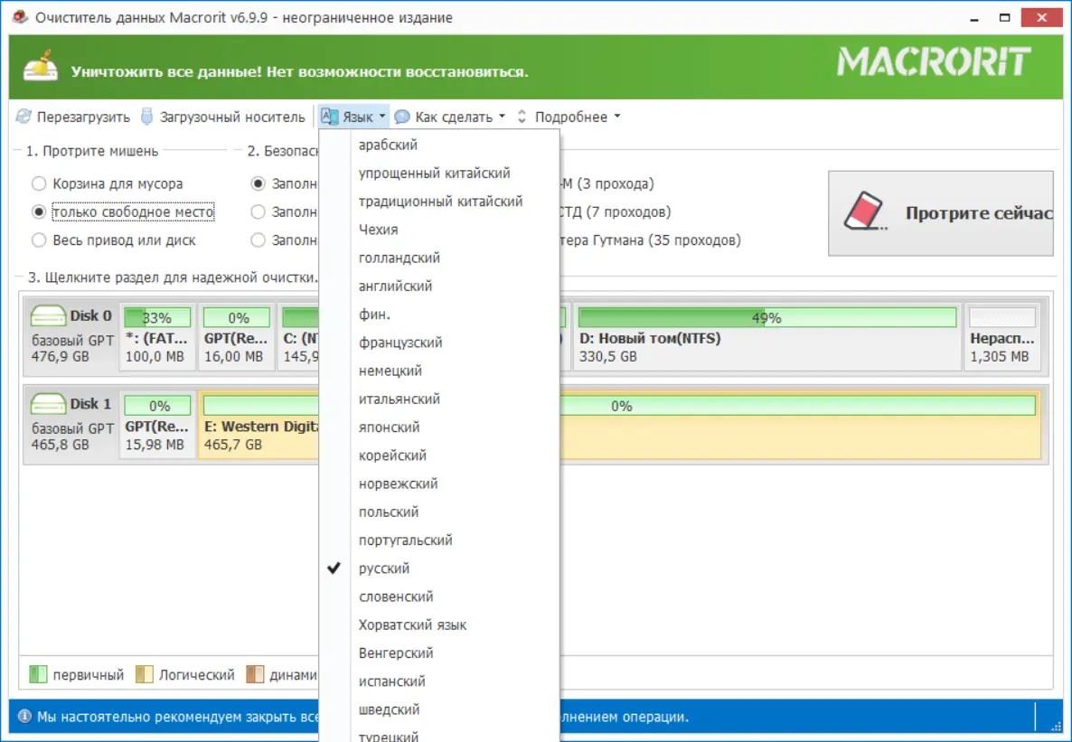 Работа с Macrorit Data Wiper