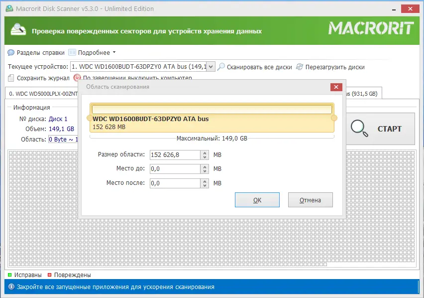 Работа с Macrorit Disk Scanner