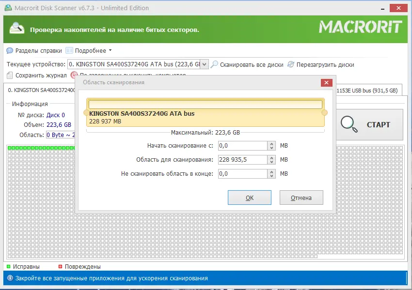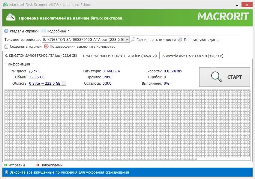 Работа с Macrorit Disk Scanner