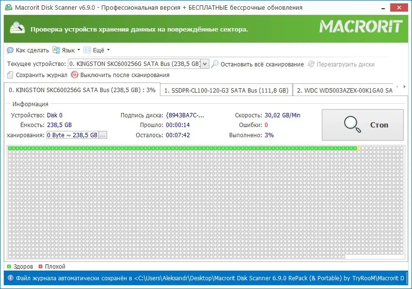 - Отсутствие автоматического исправления битых секторов — программа только диагностирует.