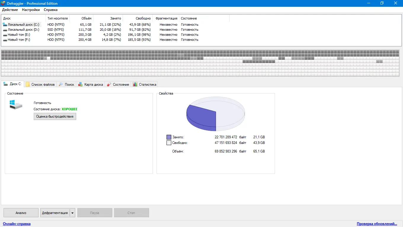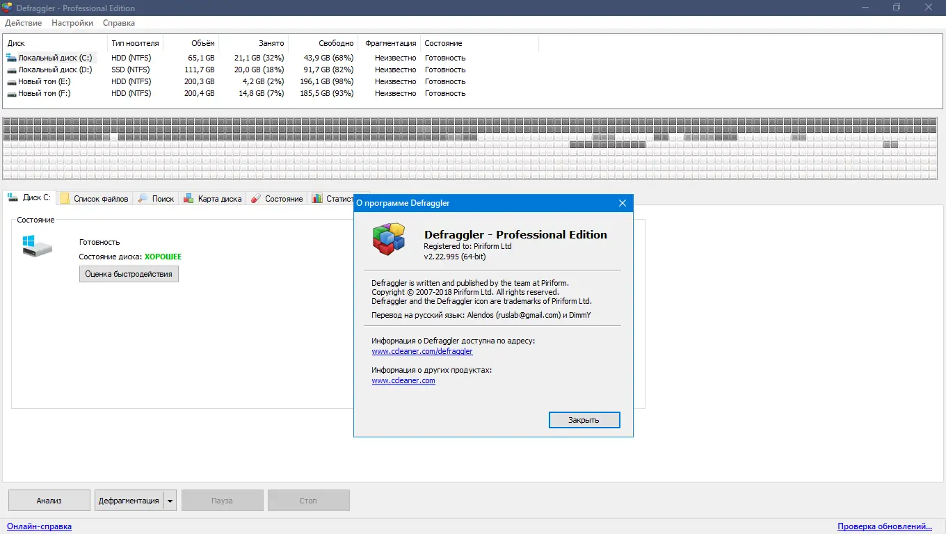 - Defraggler — утилита для дефрагментации отдельных файлов, папок и целых дисков с поддержкой современных накопителей.
