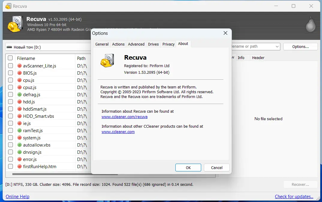 - Регулярное обновление компонентов, включая версию Recuva 1.53.2095 и Speccy 1.32.803.