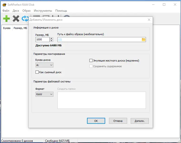 Как пользоваться SoftPerfect RAM Disk