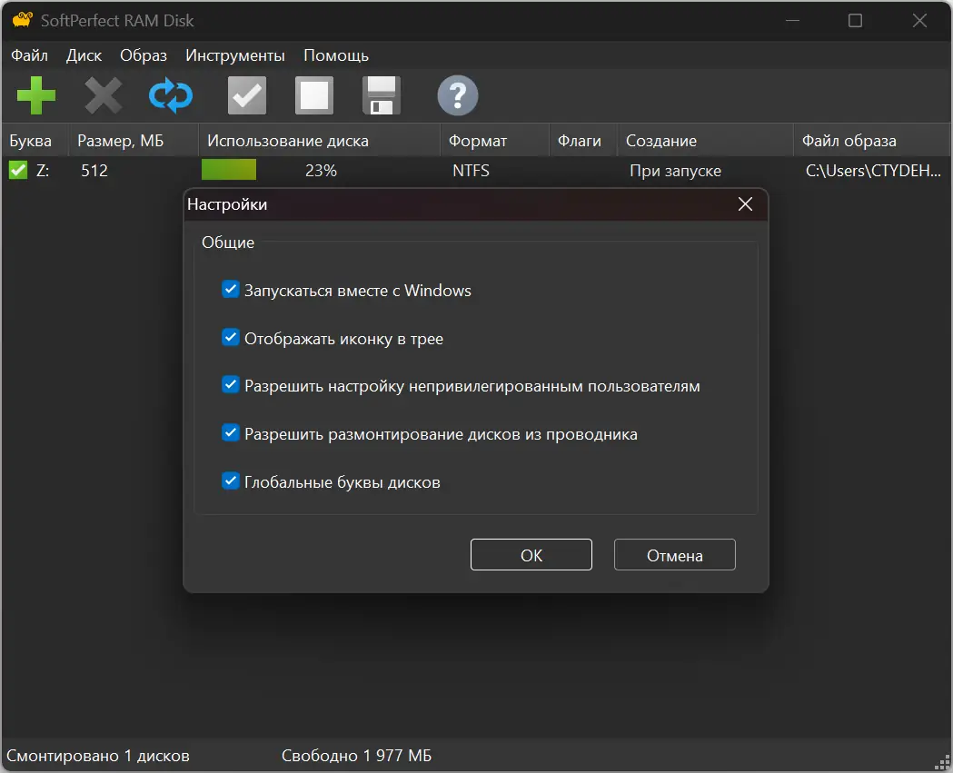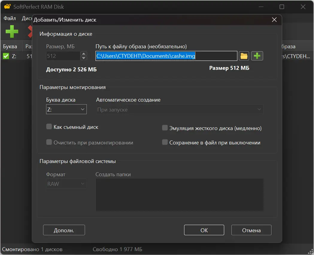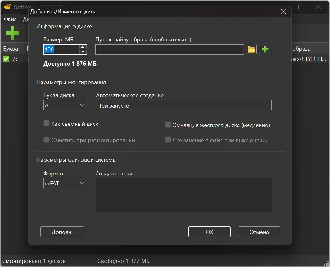 Работа с SoftPerfect RAM Disk