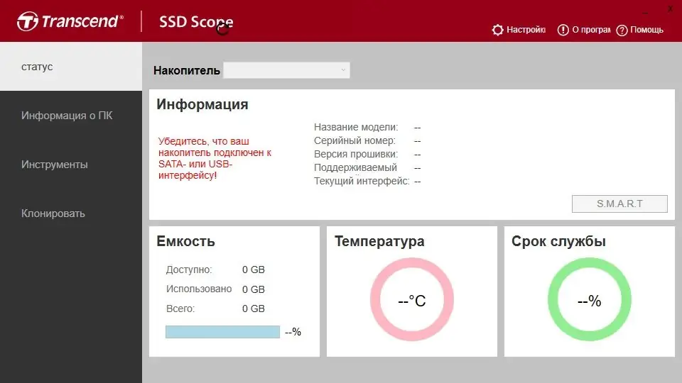 Интерфейс программы интуитивно понятен и не требует глубоких технических знаний. После запуска приложение автоматически определяет подключённый SSD и отображает его основные характеристики на главной панели. Пользователь может перейти в раздел диагностики для запуска теста производительности или выполнить сканирование диска на наличие ошибок. Вкладка S.M.A.R.T. предоставляет доступ к расширенным метрикам, таким как количество записанных гигабайт, температура контроллера и уровень износа ячеек памяти. Для очистки диска используется функция безопасного удаления, которая перезаписывает все сектора, делая восстановление данных невозможным. Процесс клонирования запускается через отдельный мастер, который шаг за шагом проводит пользователя через выбор источника и целевого диска, проверку параметров и запуск копирования.