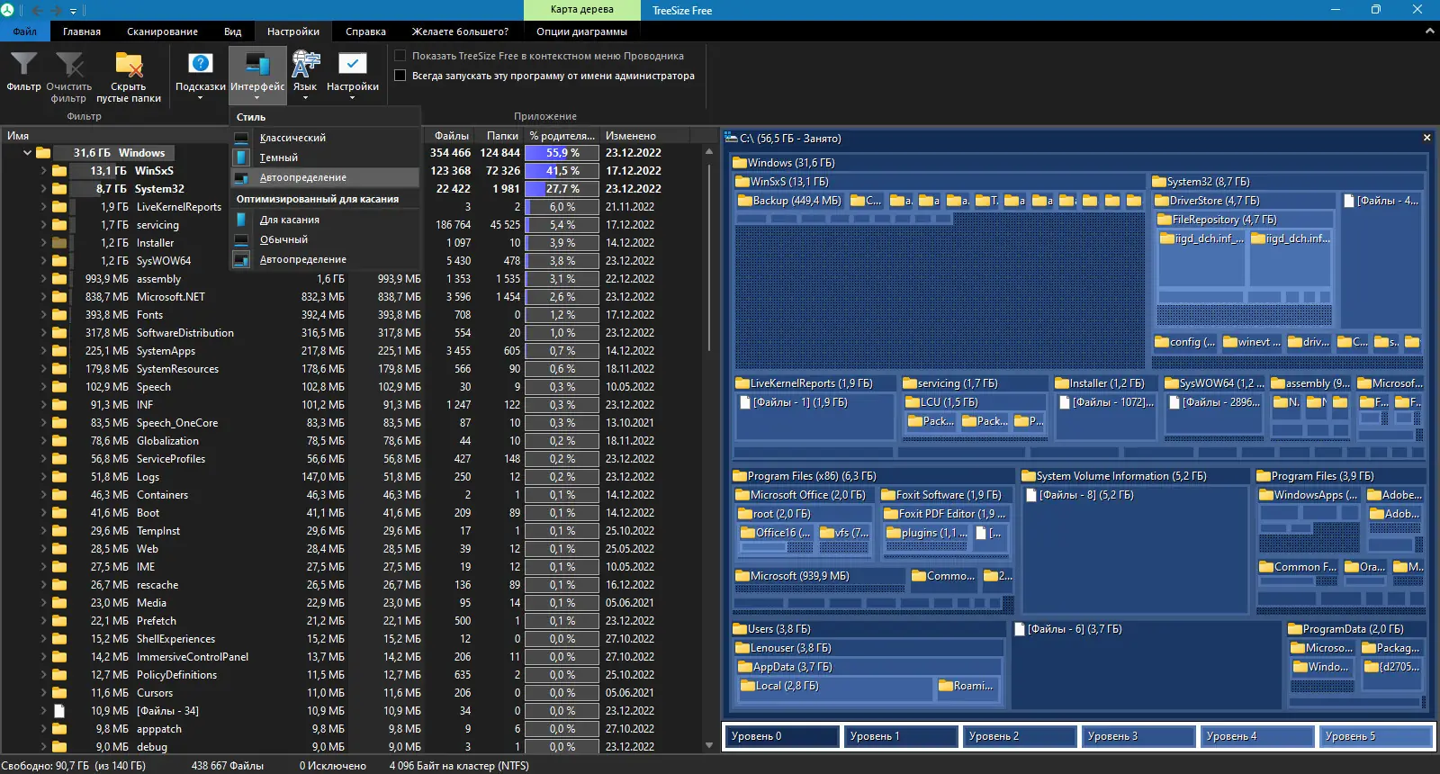 - TreeSize free скачать на русском можно без ограничений, интерфейс полностью адаптирован и не требует дополнительной настройки языка.