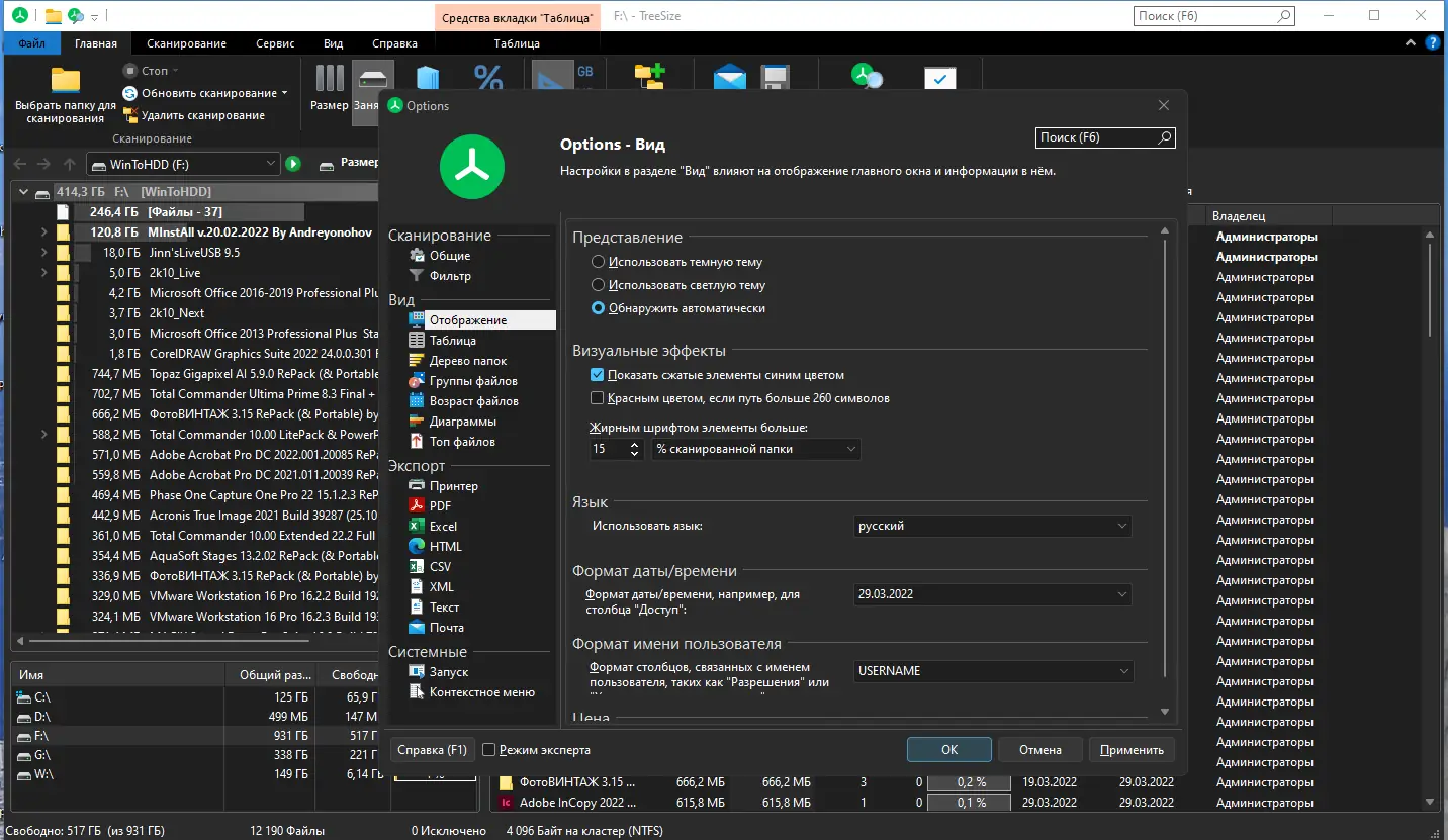 Работа с TreeSize