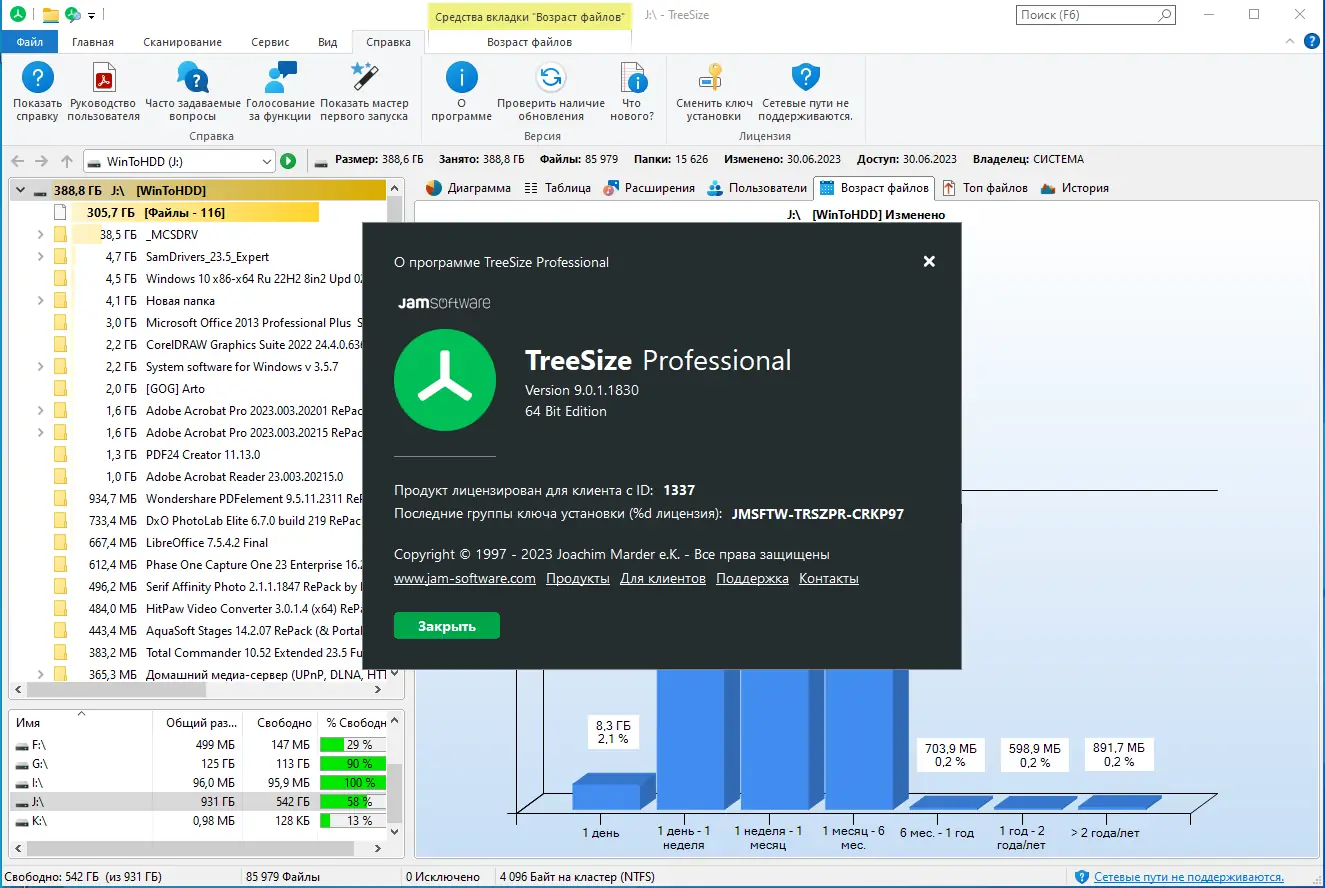 TreeSize Professional — это продвинутое решение для анализа и управления дисковым пространством в операционных системах Windows. Программа отображает структуру каталогов с детализацией по размеру, владельцу, дате последнего доступа и другим параметрам. Благодаря интуитивному интерфейсу и широким возможностям визуализации, она помогает быстро выявлять гигантские папки, устаревшие файлы и дубликаты.