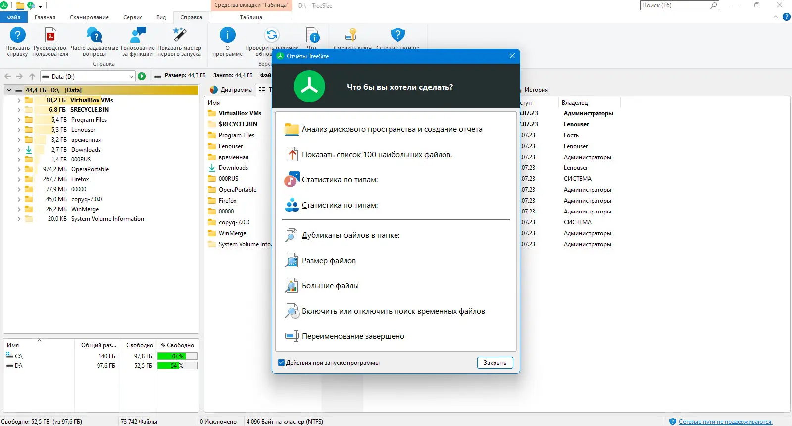 TreeSize сочетает в себе скорость, точность и гибкость, что делает его одним из лучших решений для управления файловыми системами.