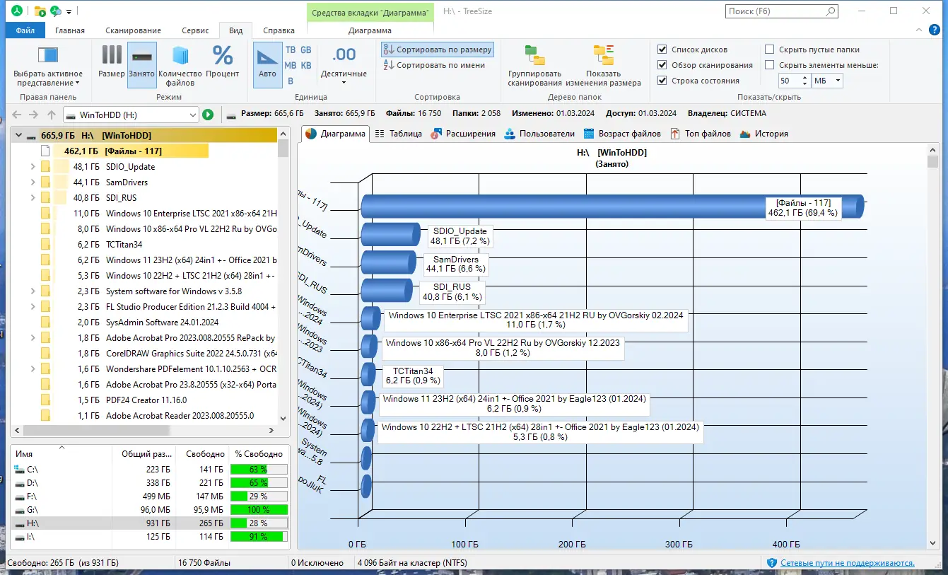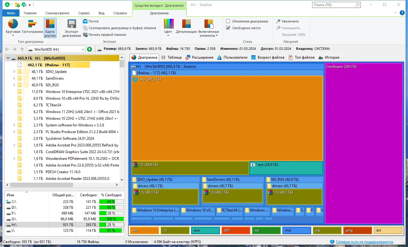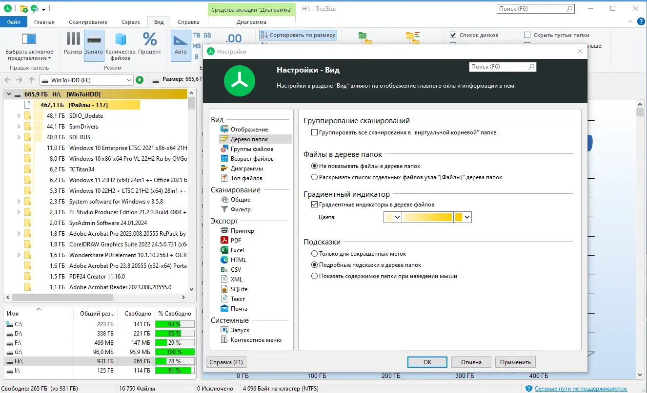 TreeSize сочетает высокую производительность и глубокую детализацию, оставаясь при этом простым в использовании.