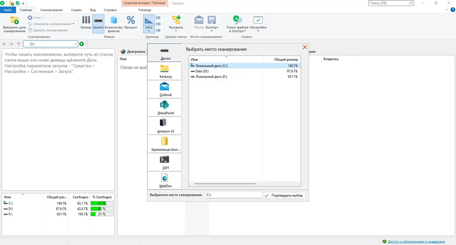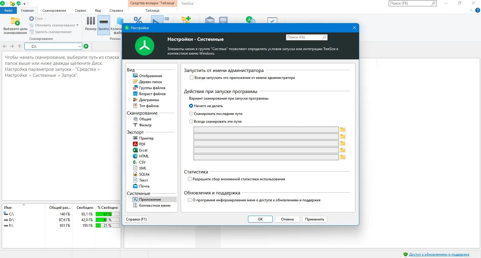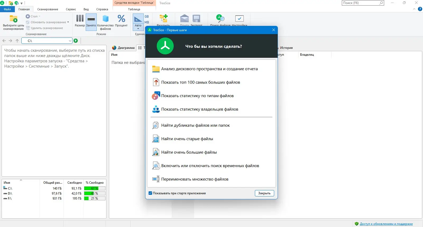 Работа с TreeSize