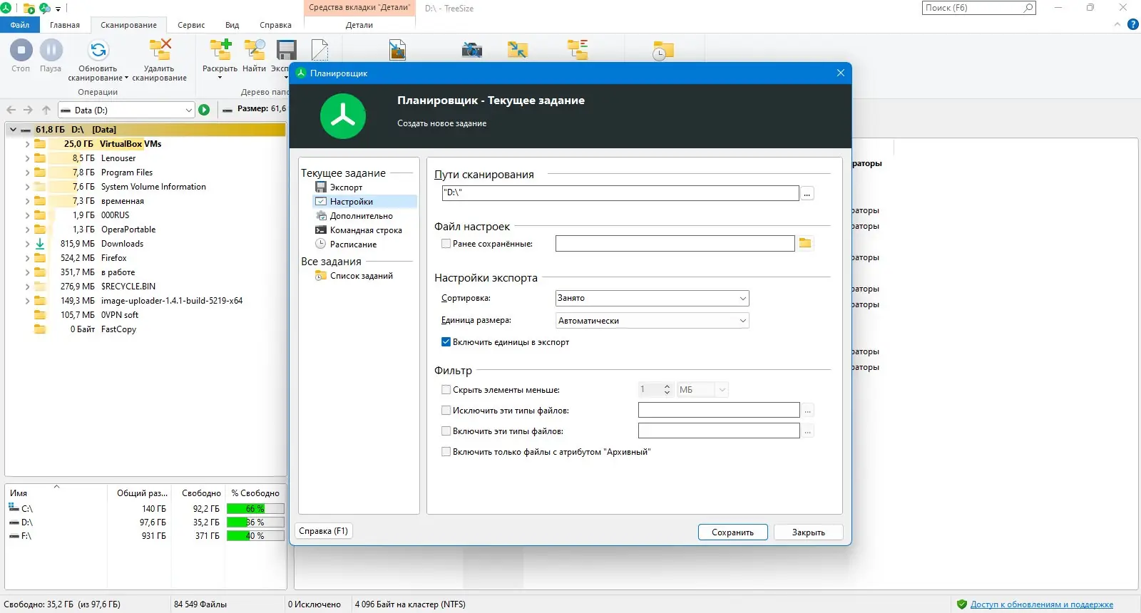 Работа с TreeSize