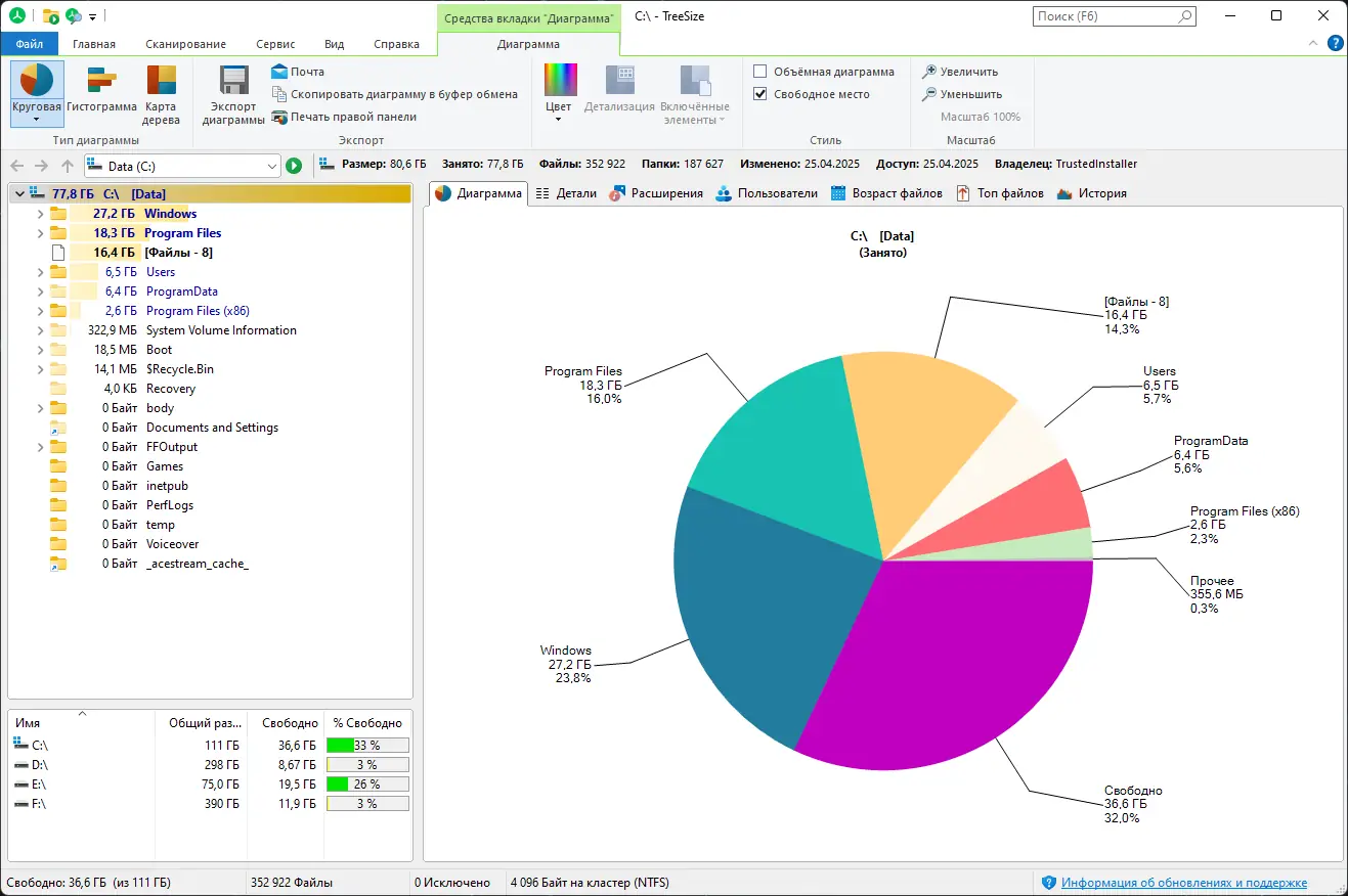 TreeSize сочетает высокую производительность, глубокую детализацию и удобный интерфейс, что делает его незаменимым при управлении данными на любых носителях.