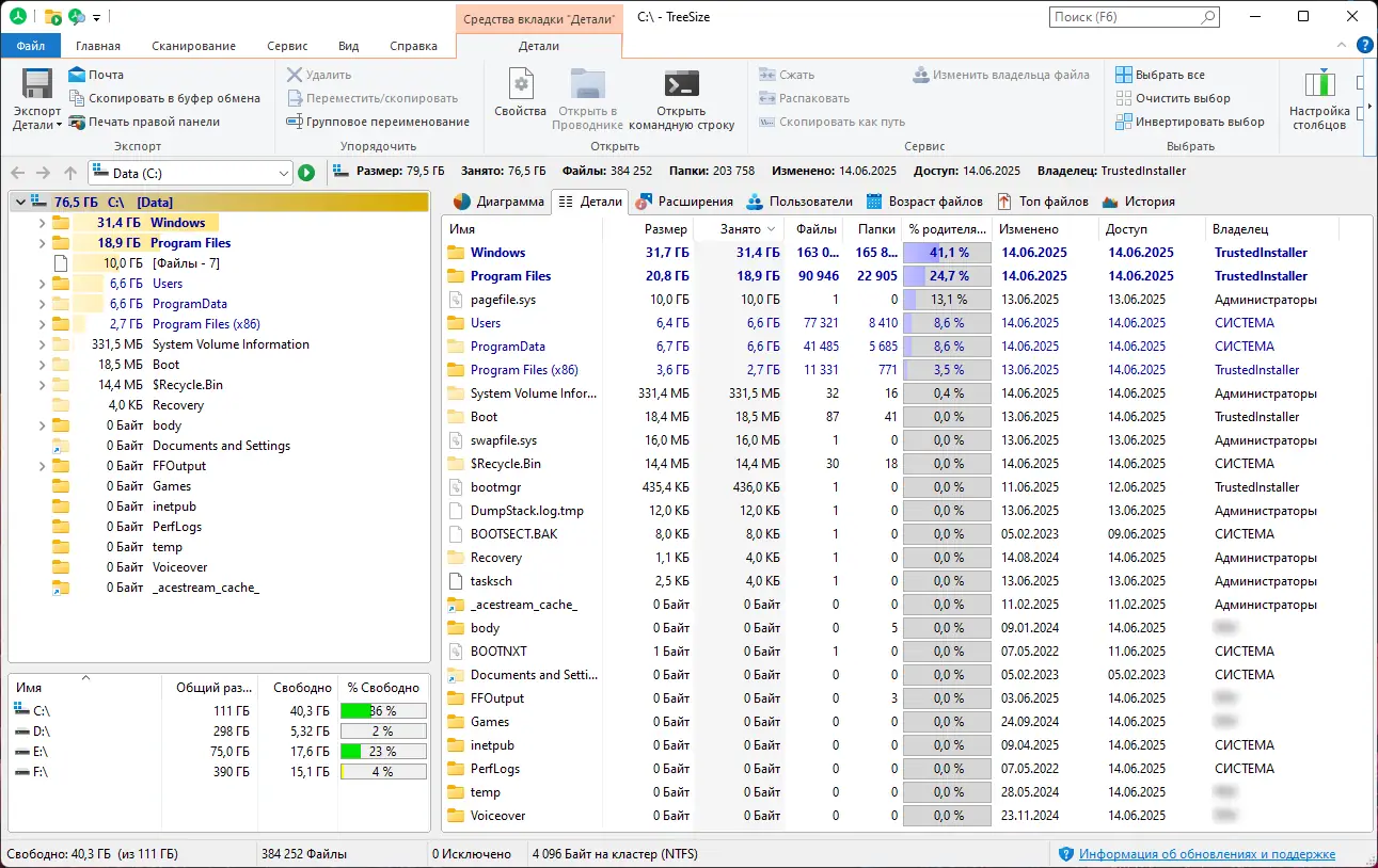 Работа с TreeSize