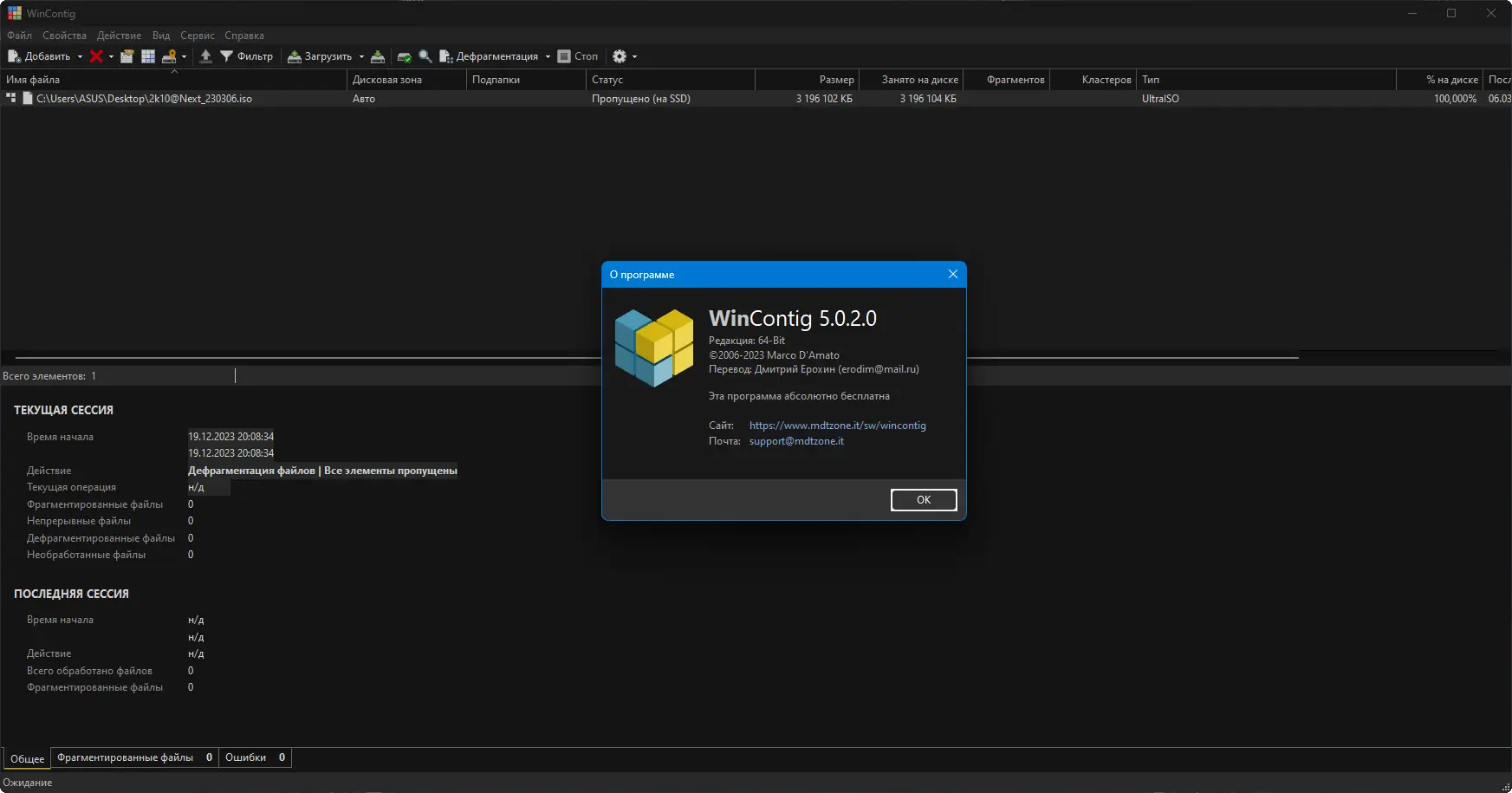 WinContig — это портативный дефрагментатор, позволяющий быстро оптимизировать отдельные файлы без необходимости дефрагментации всего жёсткого диска. Программа работает автономно, не требует установки и не оставляет следов в системе, что делает её удобной для использования на любом компьютере.