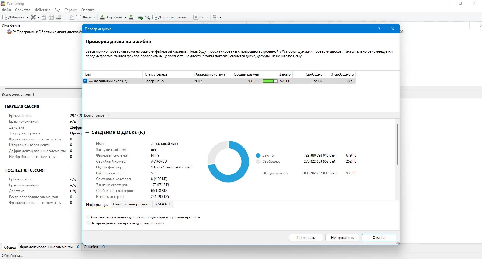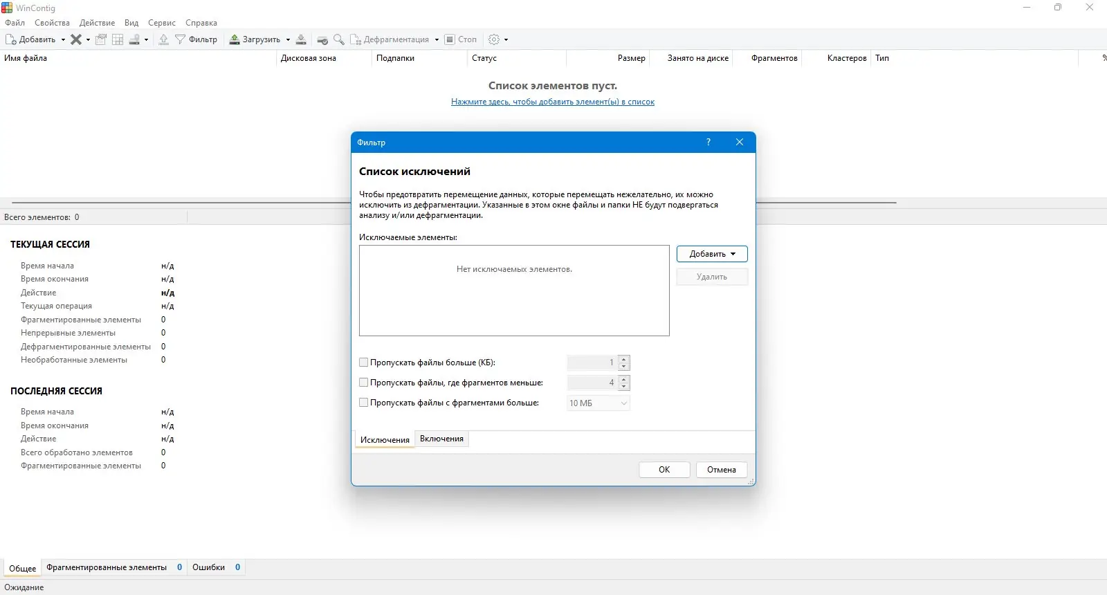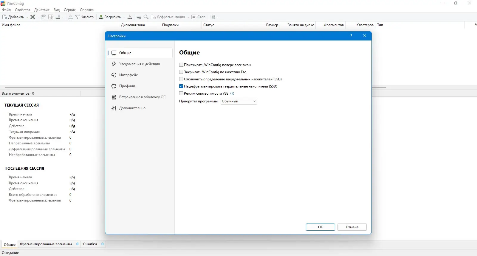 - Отсутствие встроенного анализа общего состояния фрагментации диска