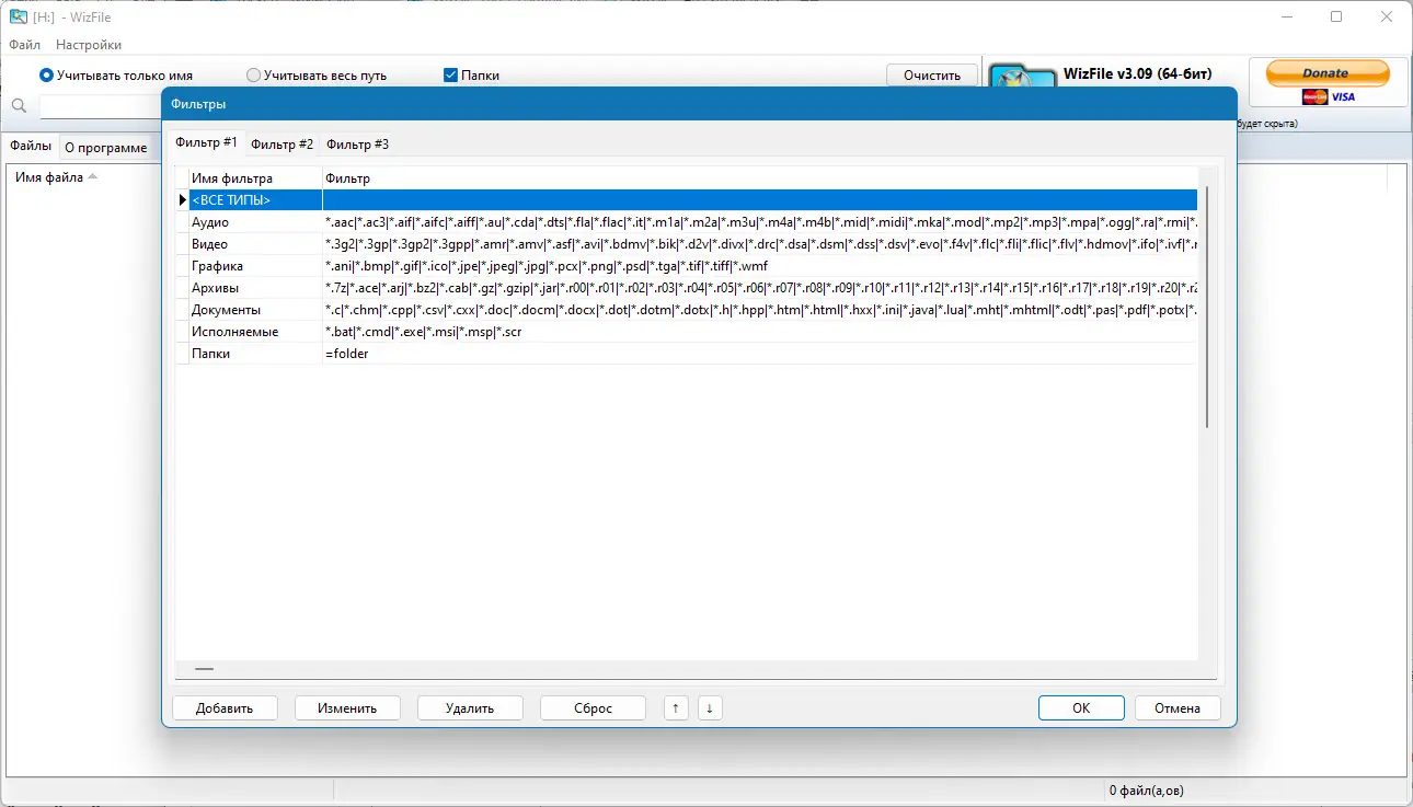 - Позволяет фильтровать результаты по типу файлов, размеру, дате изменения и другим параметрам.