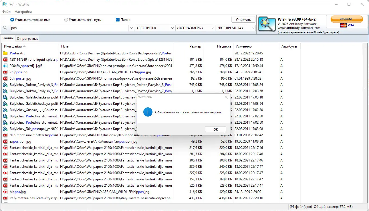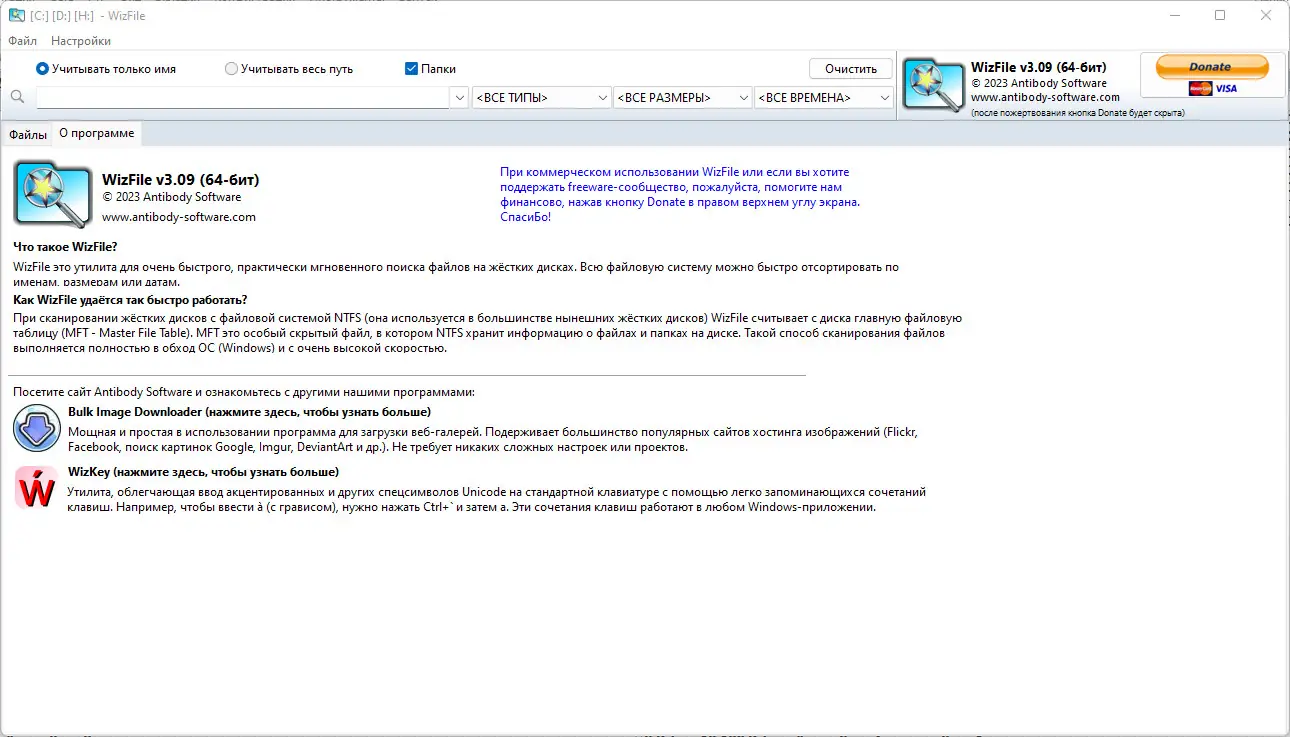 WizFile — это компактное приложение для быстрого поиска файлов на жёстком диске, позволяющее за секунды находить нужные данные и определять, какие папки занимают больше всего места. Программа не требует установки и работает напрямую с файловой системой, обеспечивая мгновенный доступ к информации о содержимом дисков.