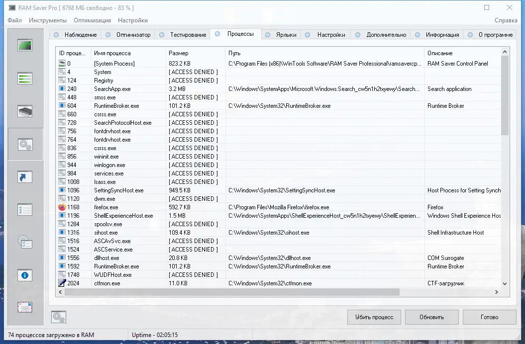 Описание RAM Saver Professional